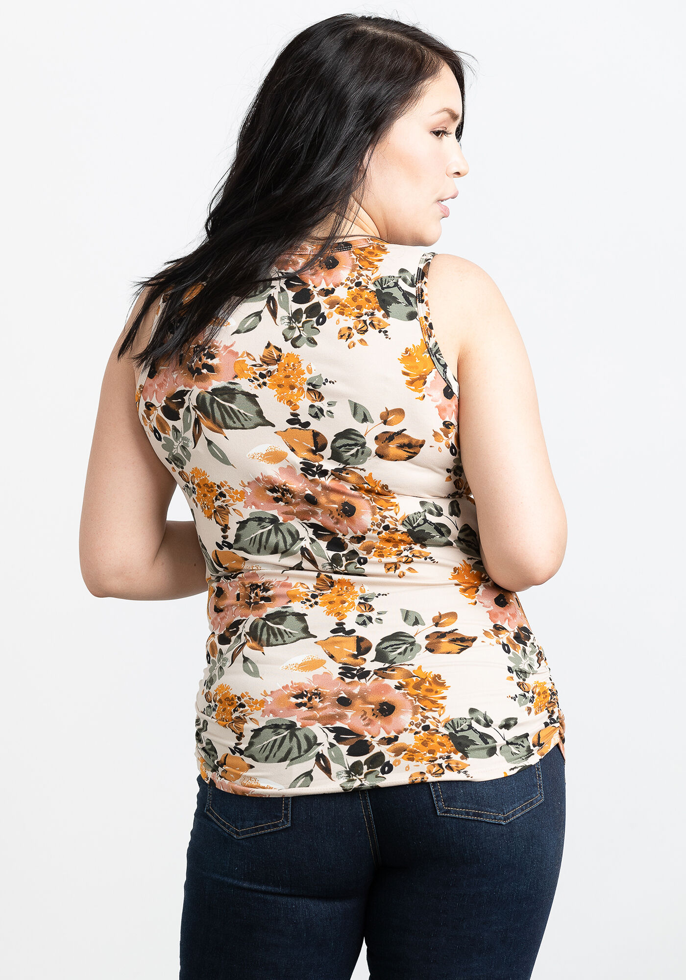 Women's Floral Side Ruched Tank Image 3