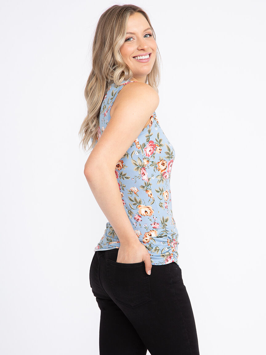 Women's Floral Side Ruched Tank Image 3