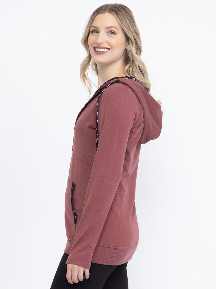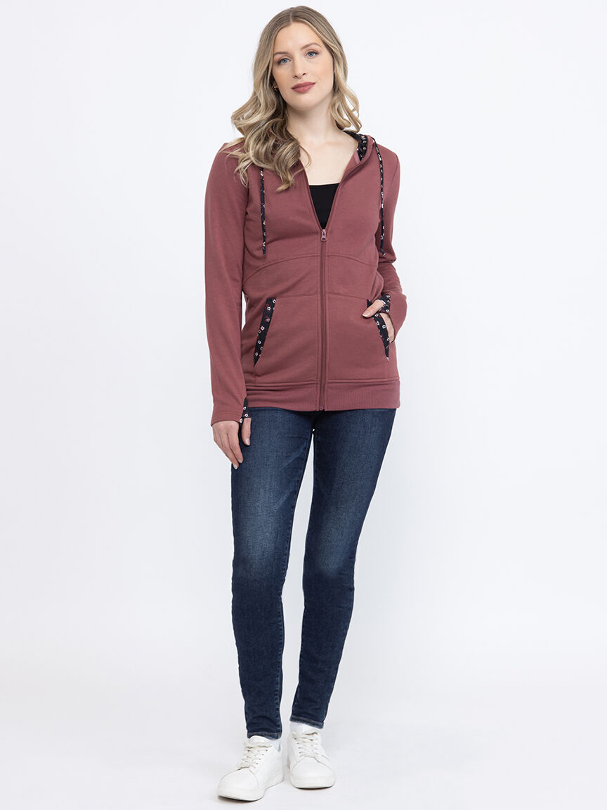 Women's Floral Trim Zip Hoodie Image 6