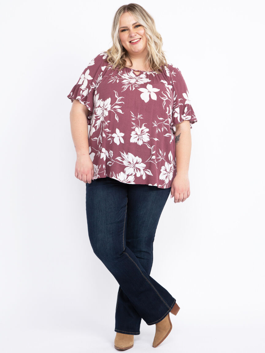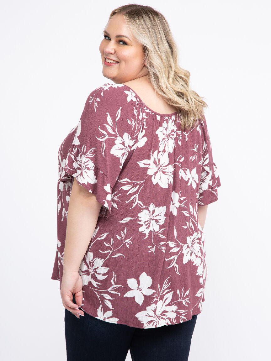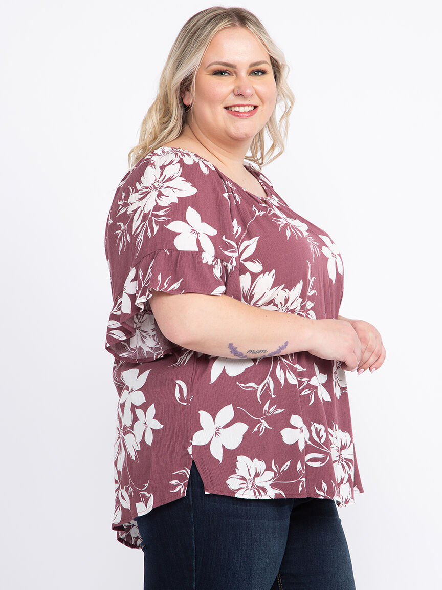 Women's Flutter Sleeve Peasant Top Image 1