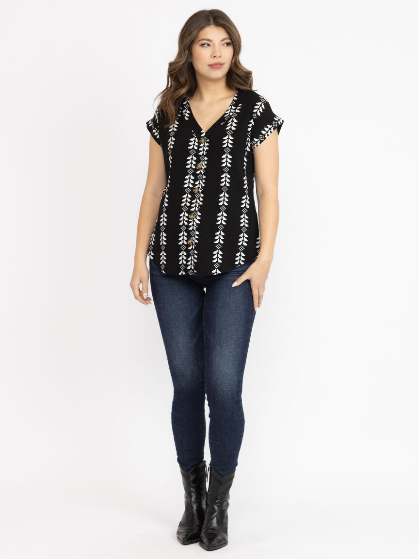 Rated 4 out of 5 by from Cute but shrinks This is a super cute top. But it does shrink when washed even by the care instructions. Suggest sizing up for shrink allowance
