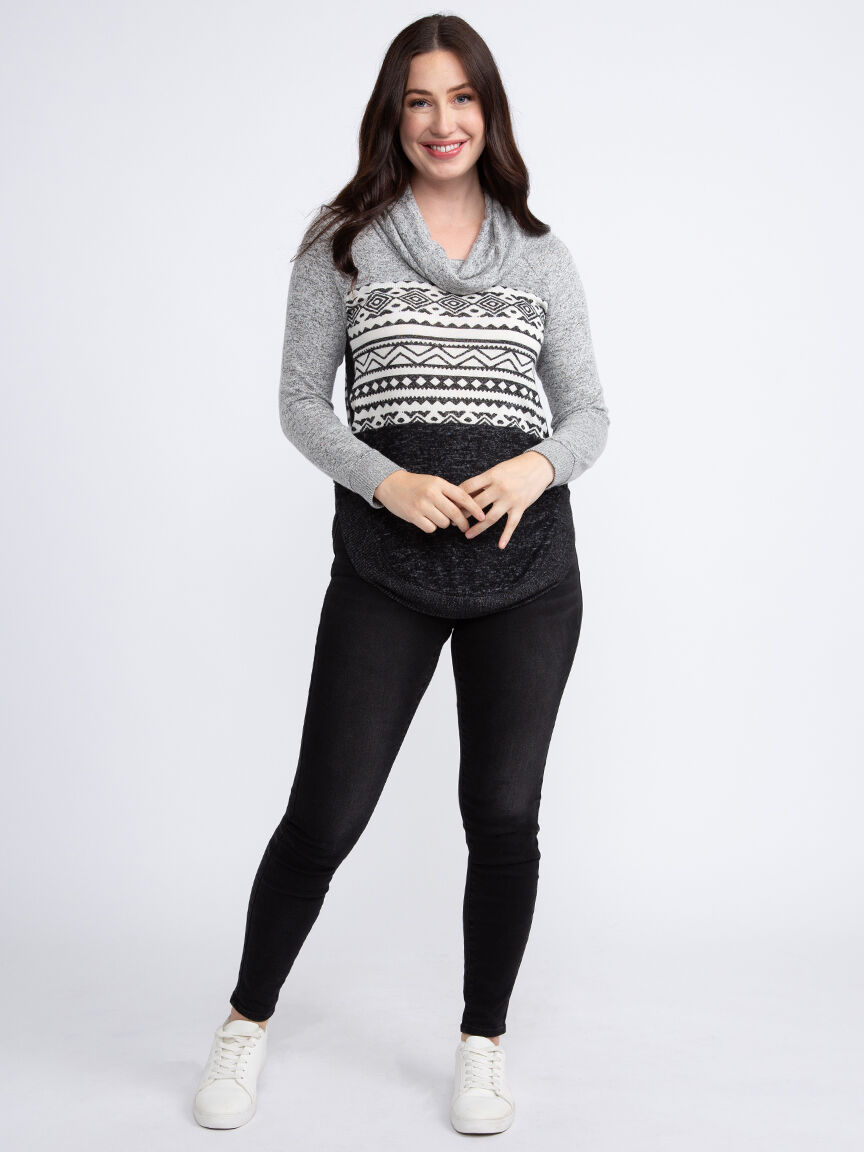 Women's Geo Colour Block Cowl Neck Tunic Image 1