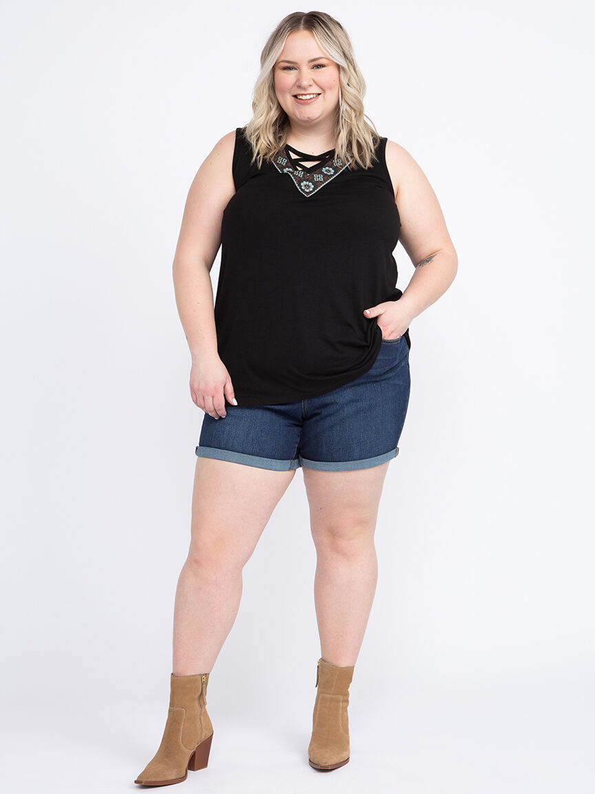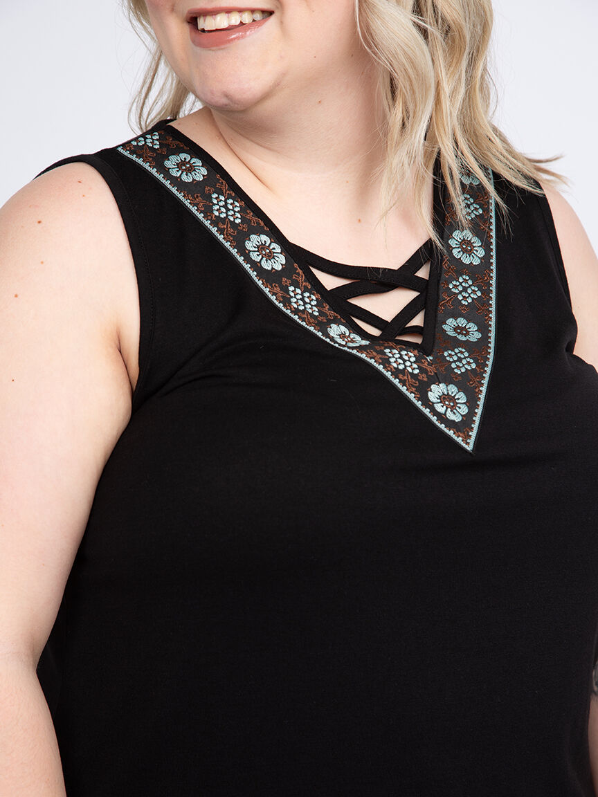 Women's Geo Cross Neck Tank Image 2