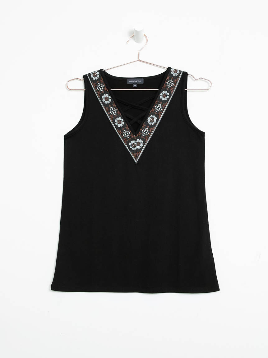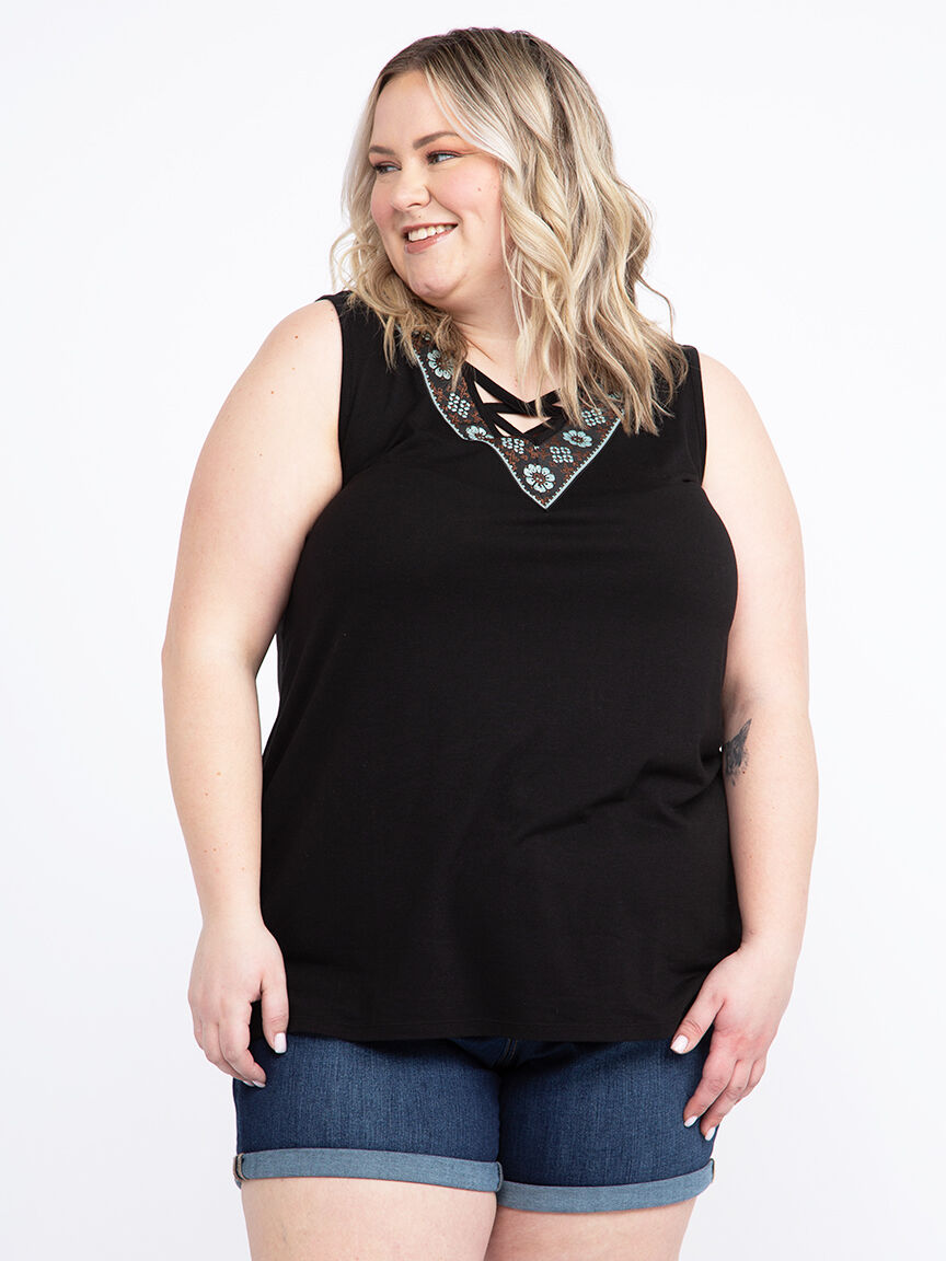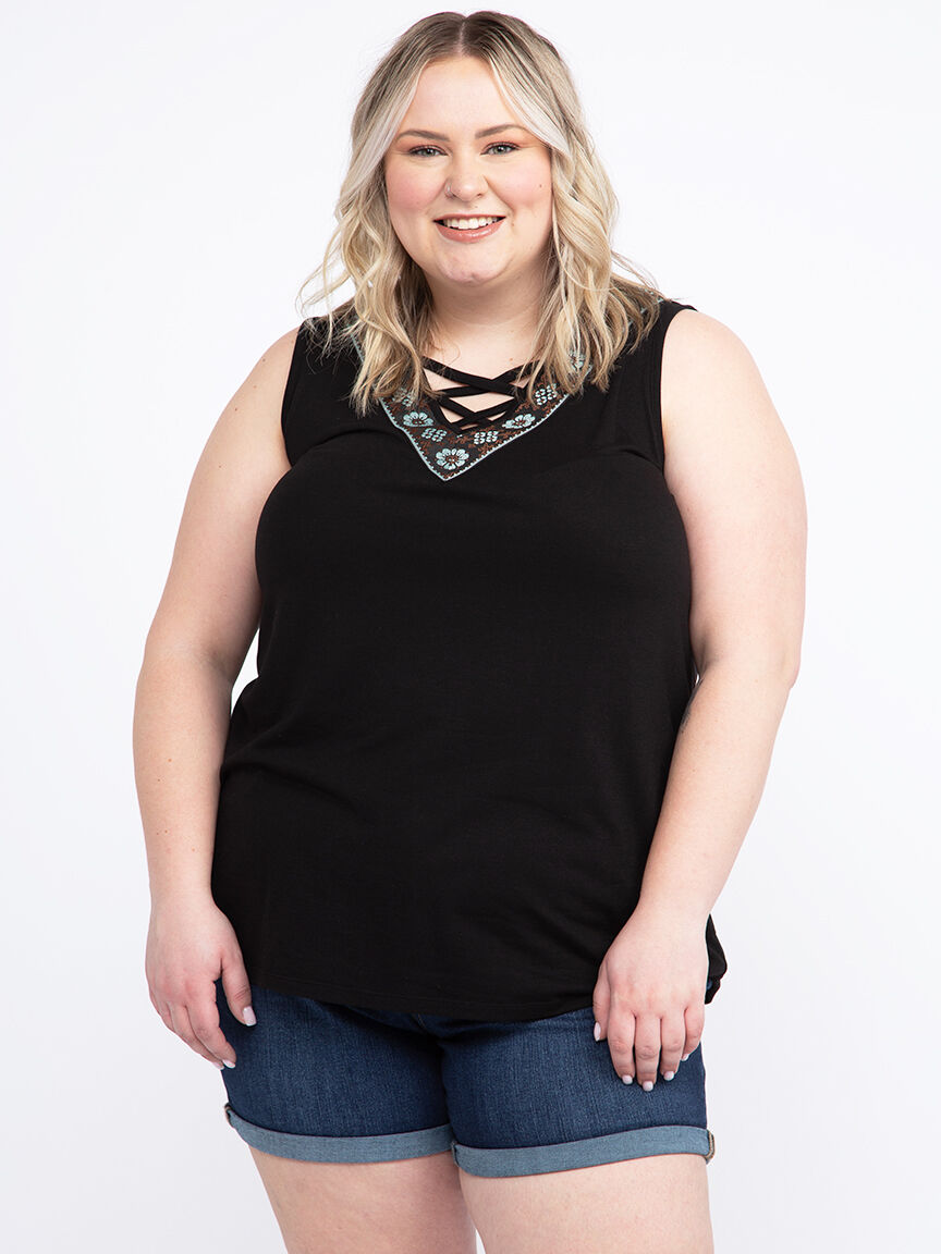 Women's Geo Cross Neck Tank Image 1