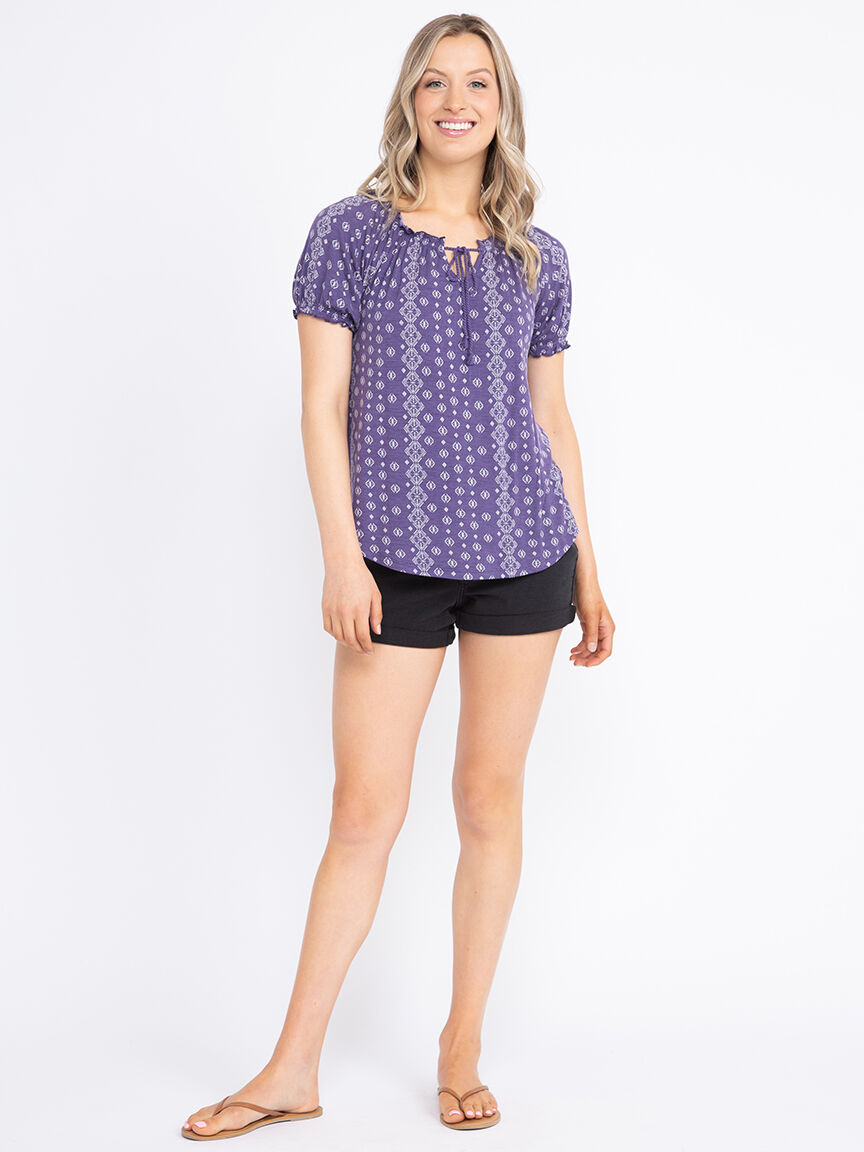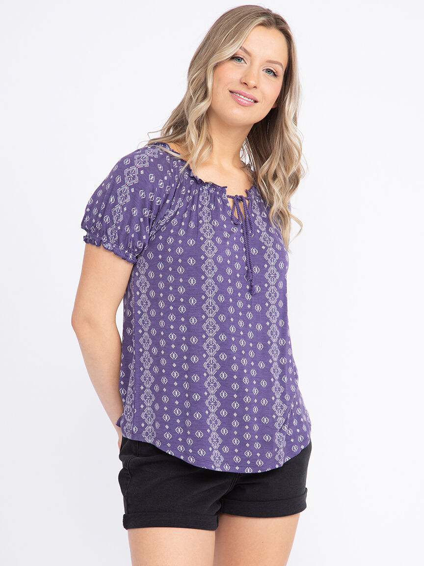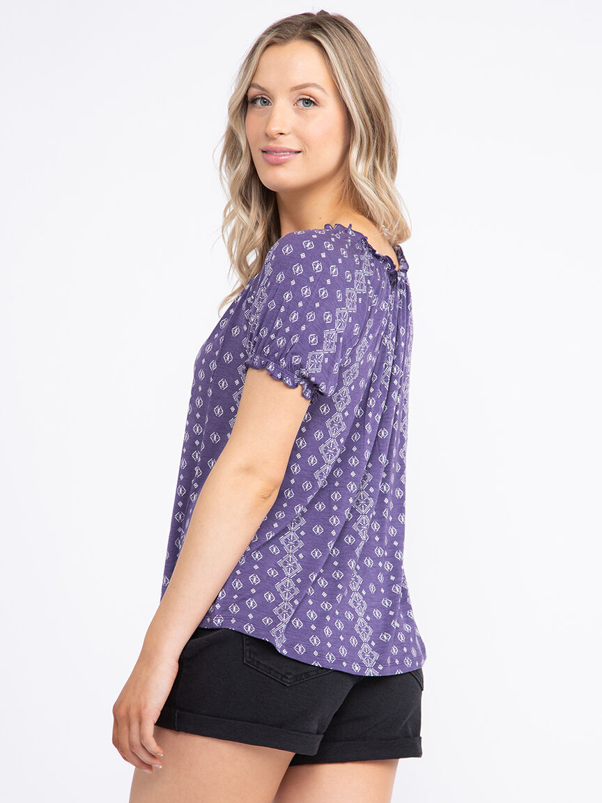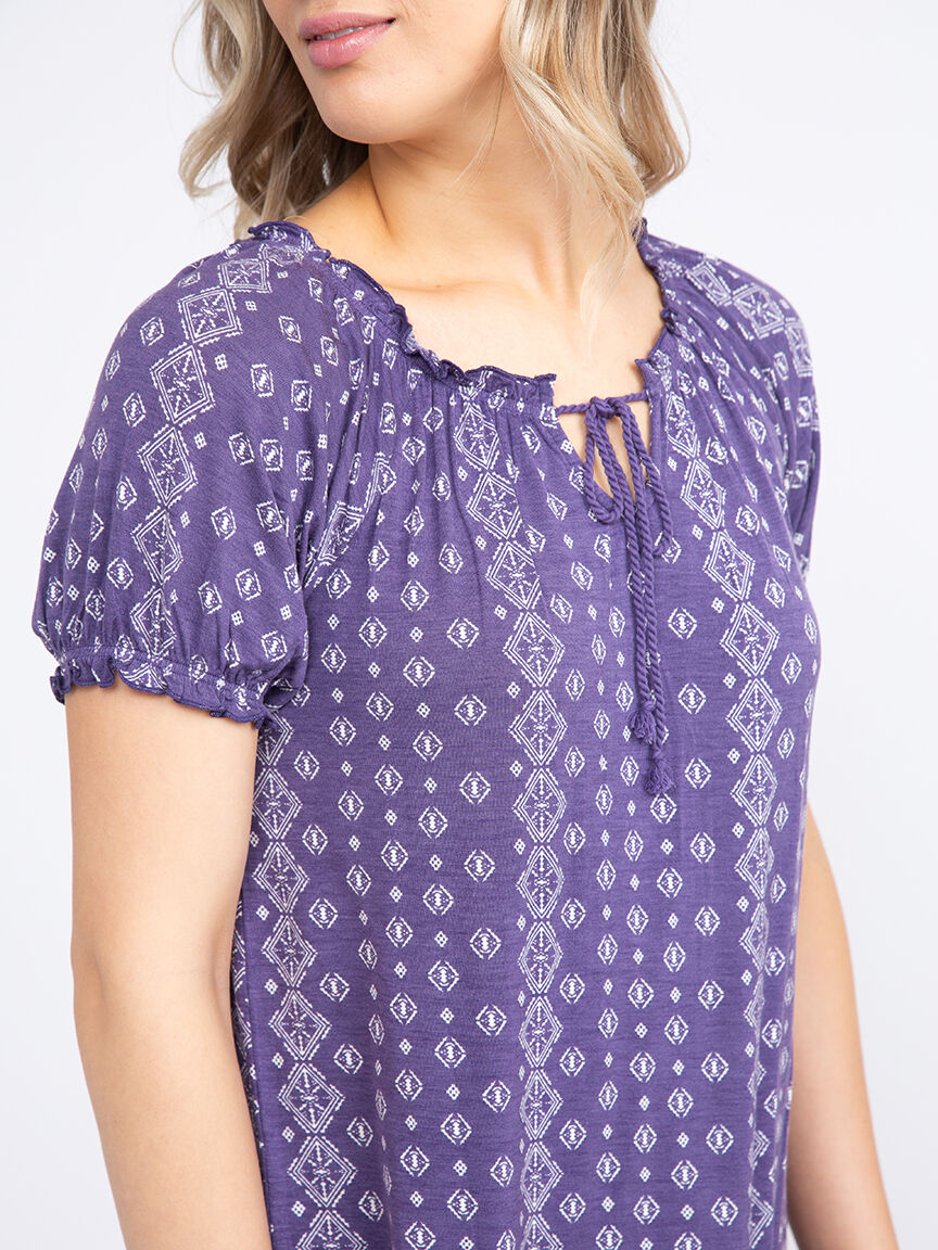 Rated 4 out of 5 by from Surprise in a nice way Bought online, had more elastic I didn't realize (arms and neck) it was ruffled, but it stays on well and fairly comfortable. A really nice shirt I bought for work.