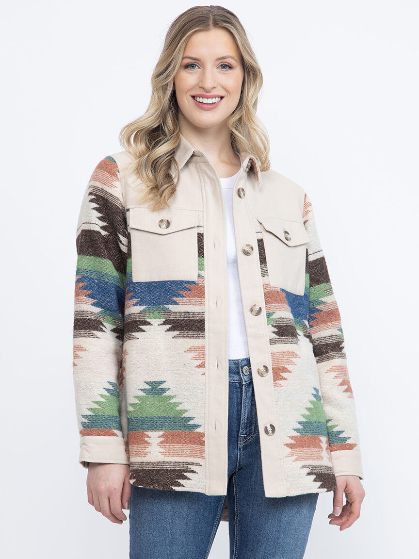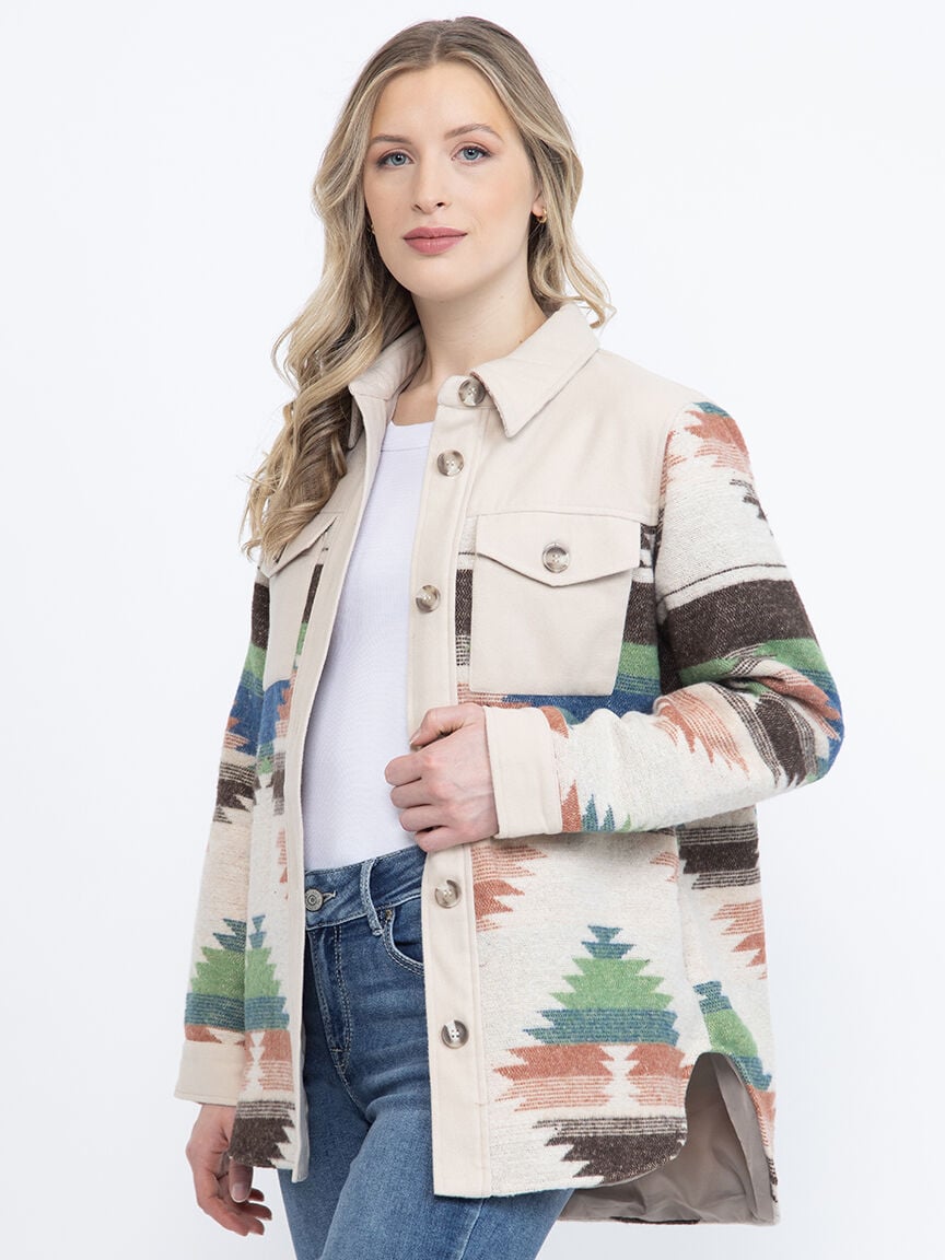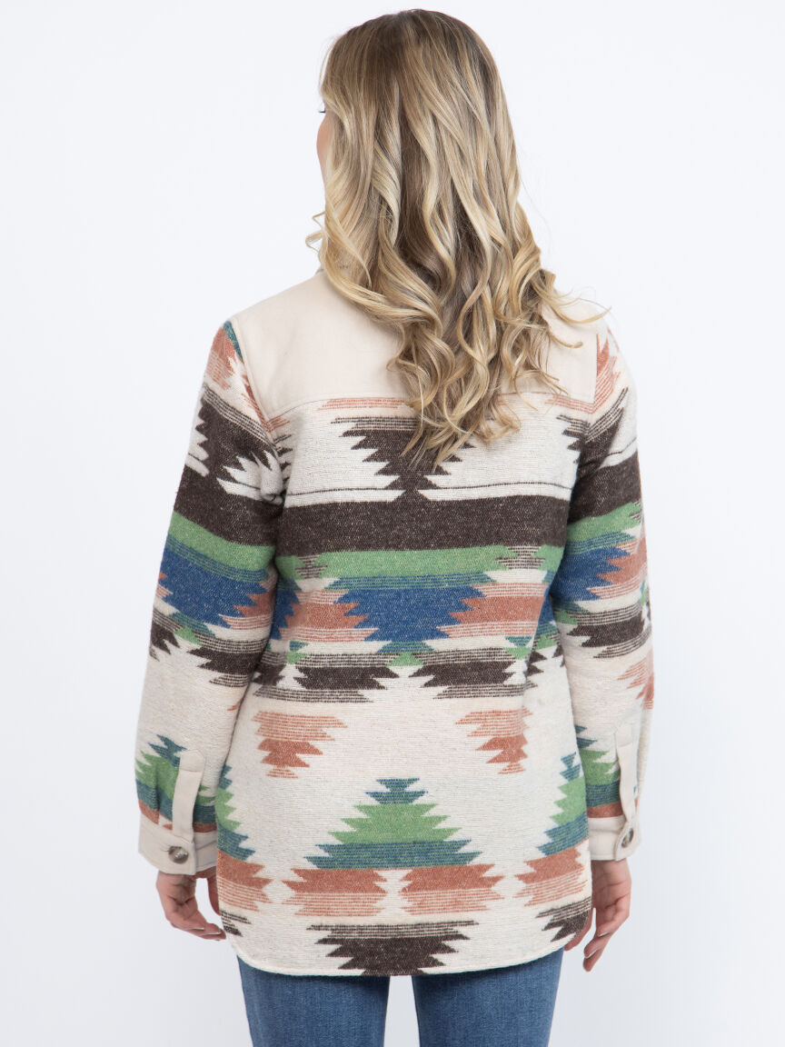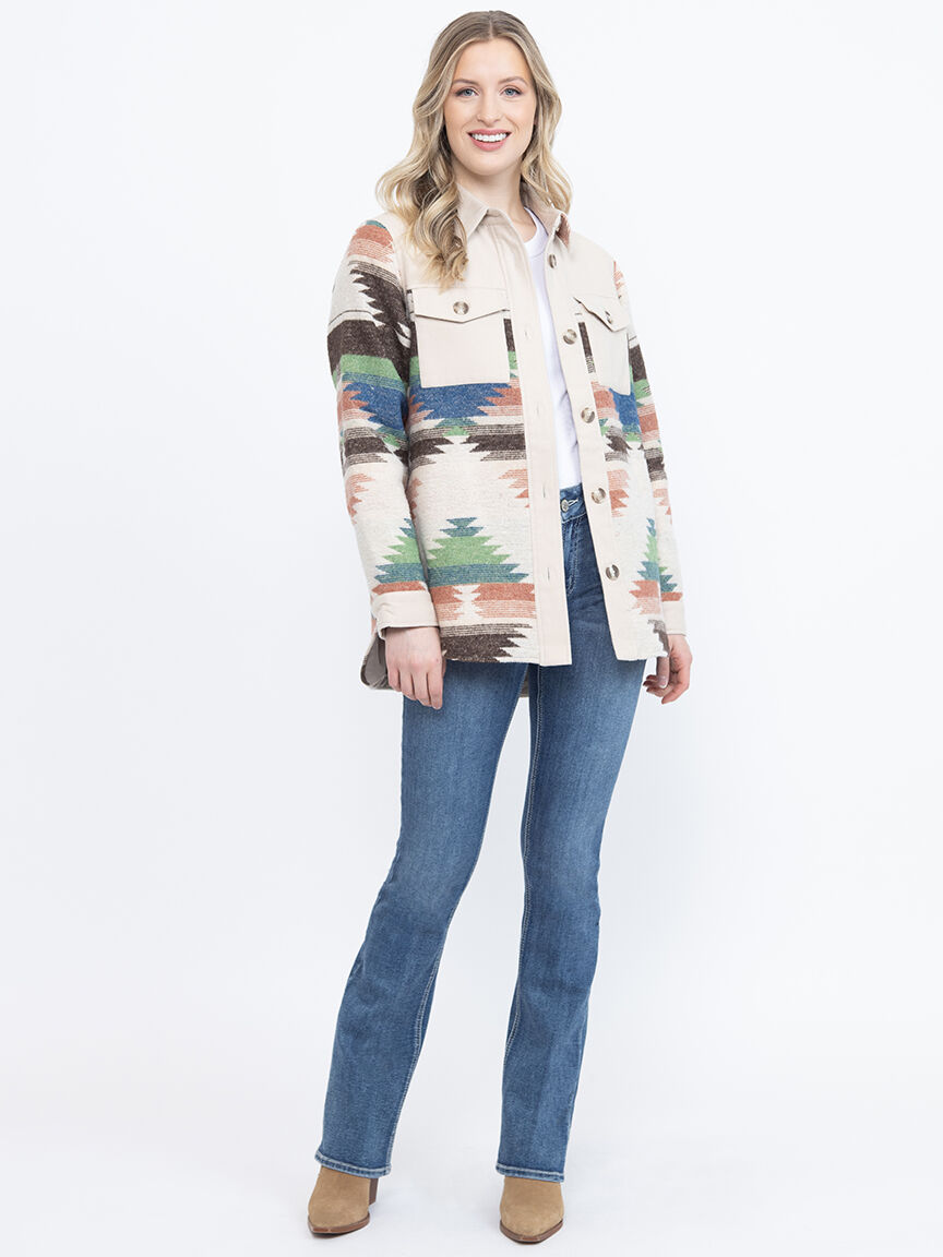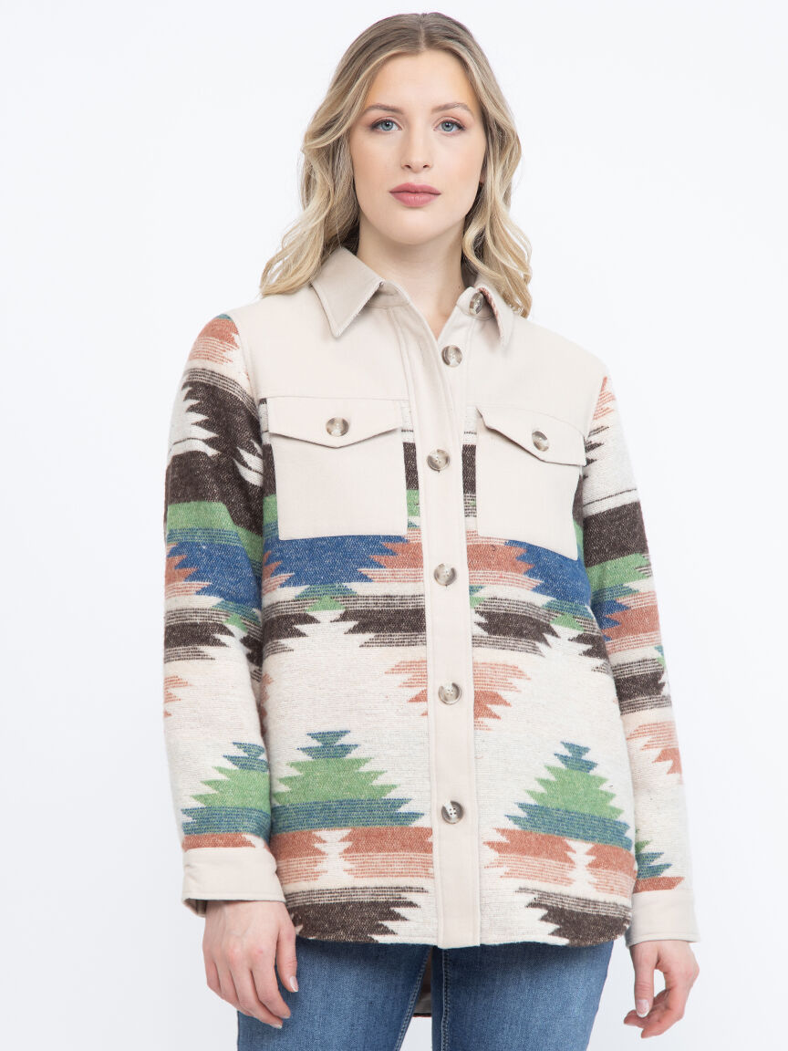 Rated 5 out of 5 by from Geometric Shacket was a gorgeous find Beautiful fall coat, excellent fit and fun pattern. I get so many compliments!