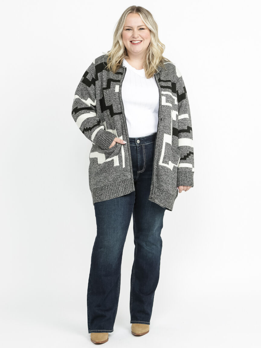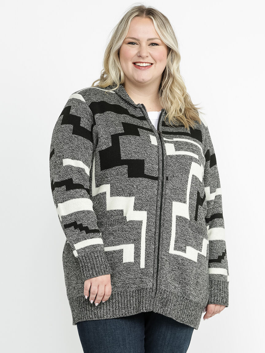 Women's Geometric Zip Front Cardigan Image 1