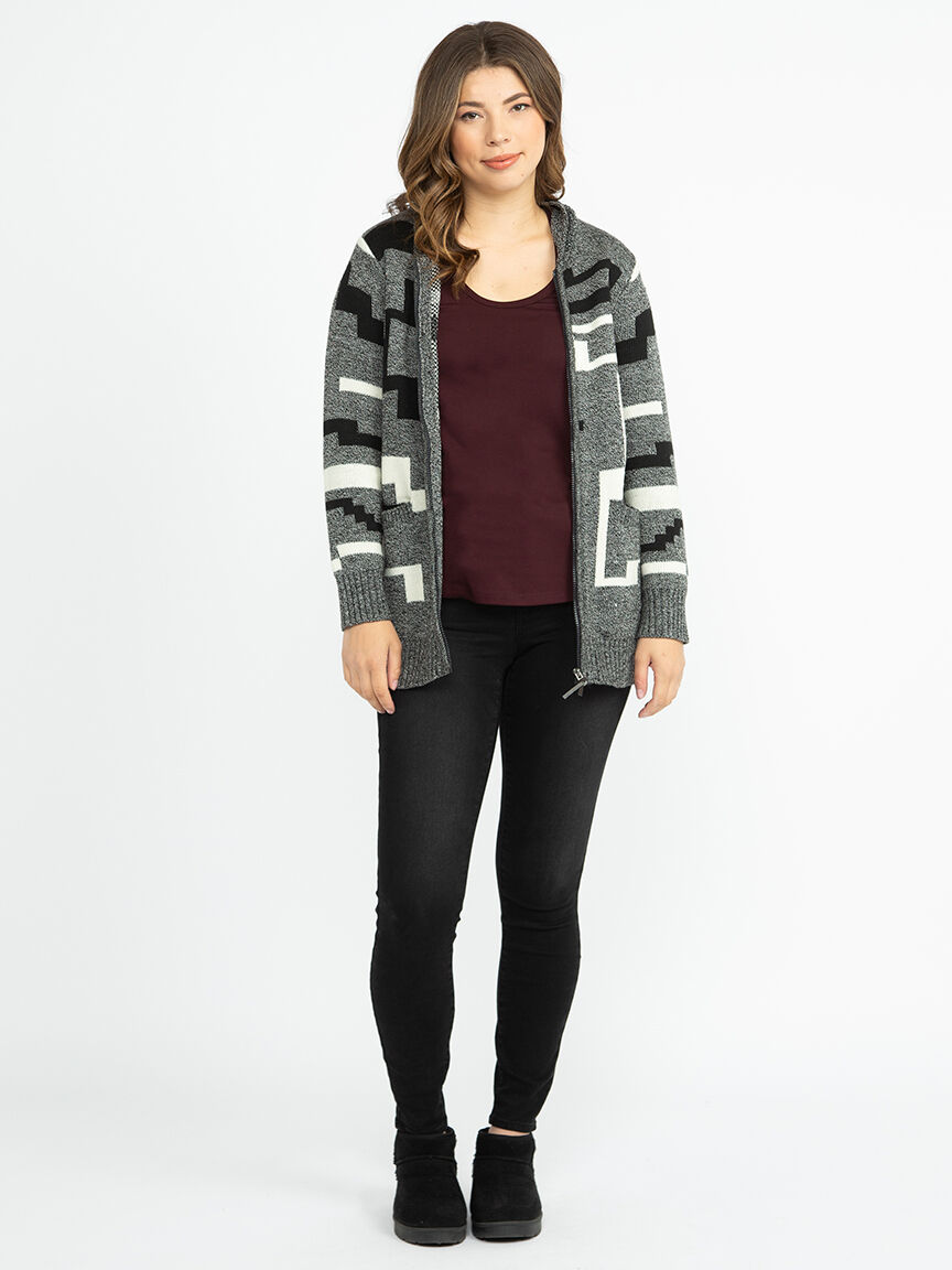 Women's Geometric Zip Front Cardigan Image 4