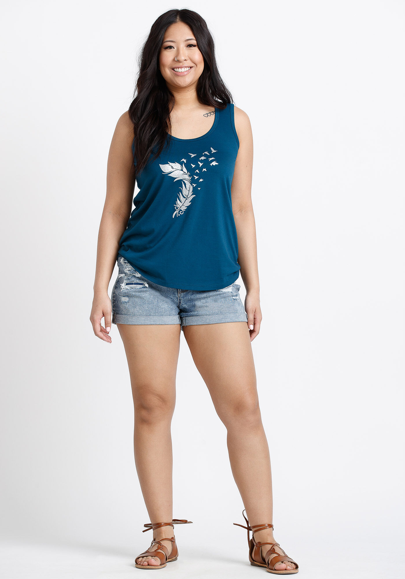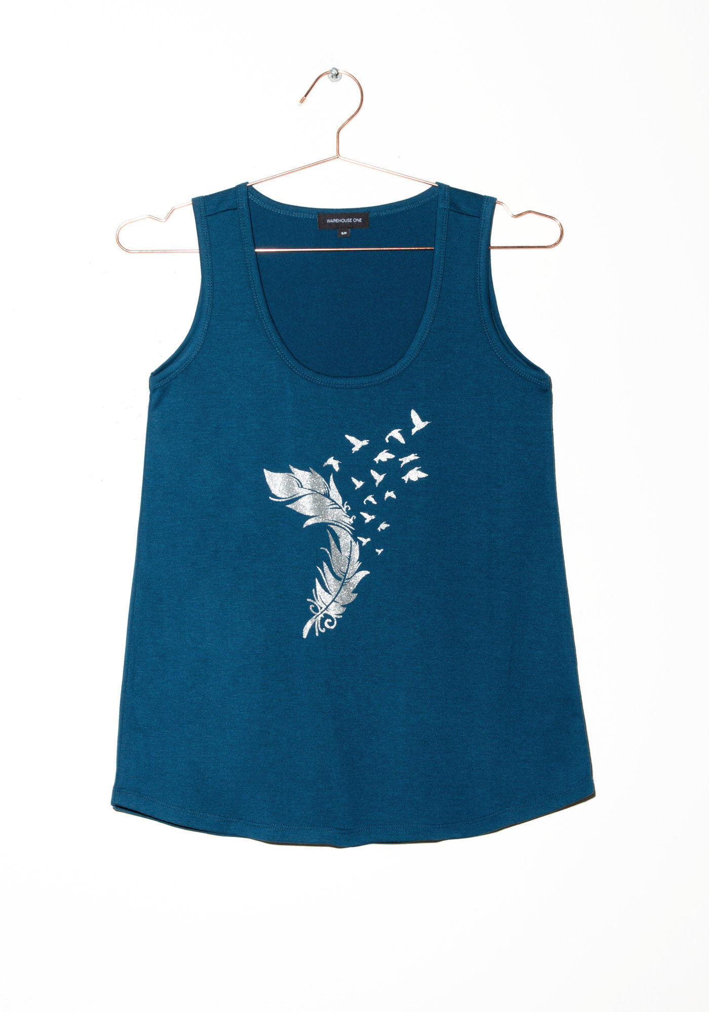 Women's Glitter Feather Scoop Neck Tank Image 1