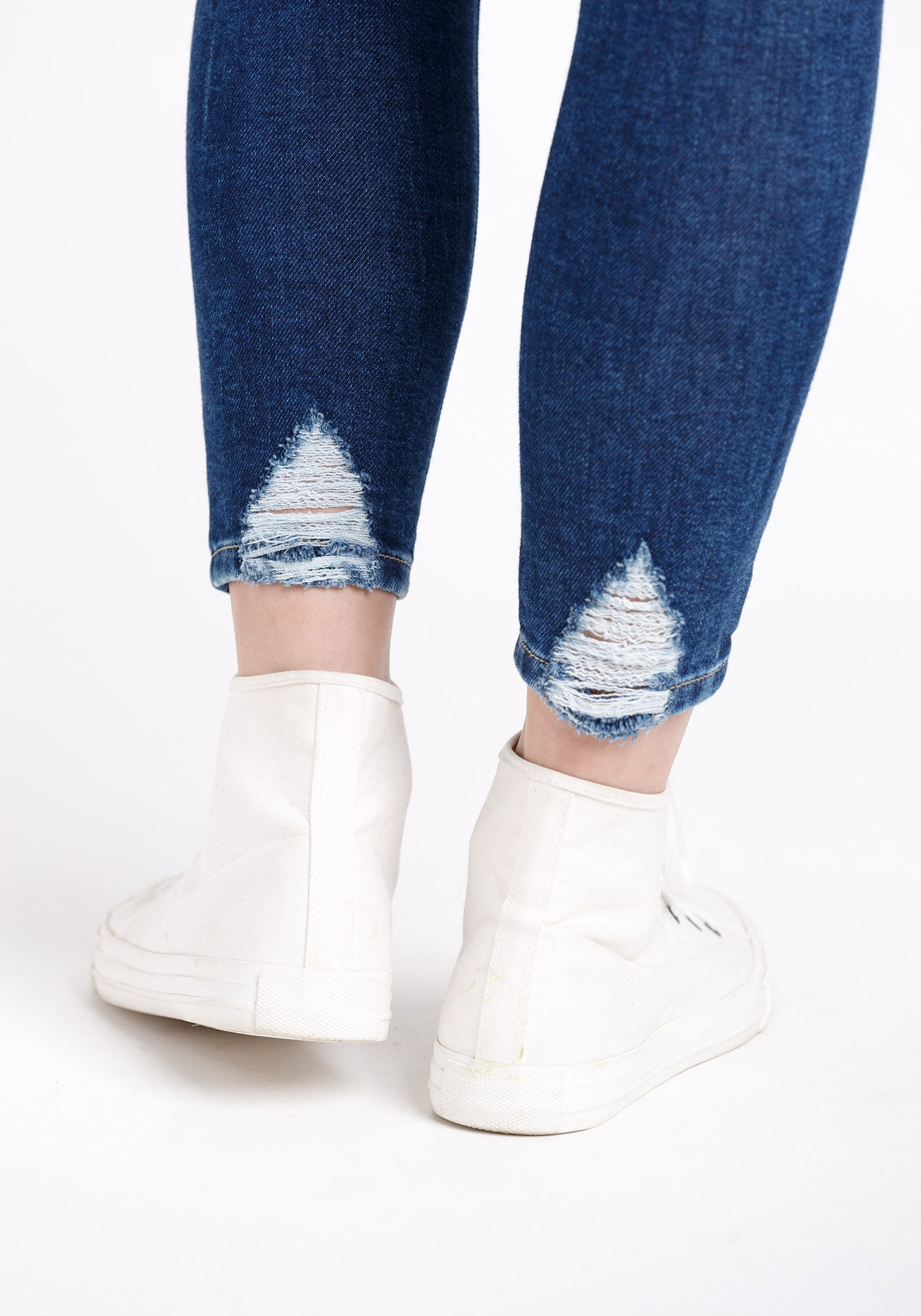 Women's High Rise Chewed Hem Ankle Skinny Jeans Image 4