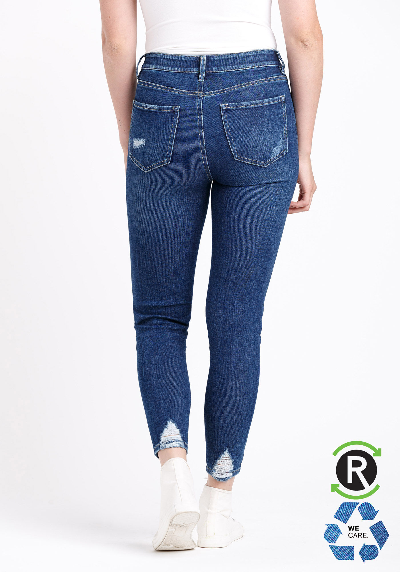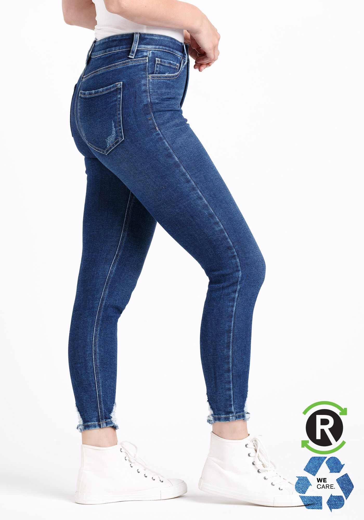Women's High Rise Chewed Hem Ankle Skinny Jeans Image 1
