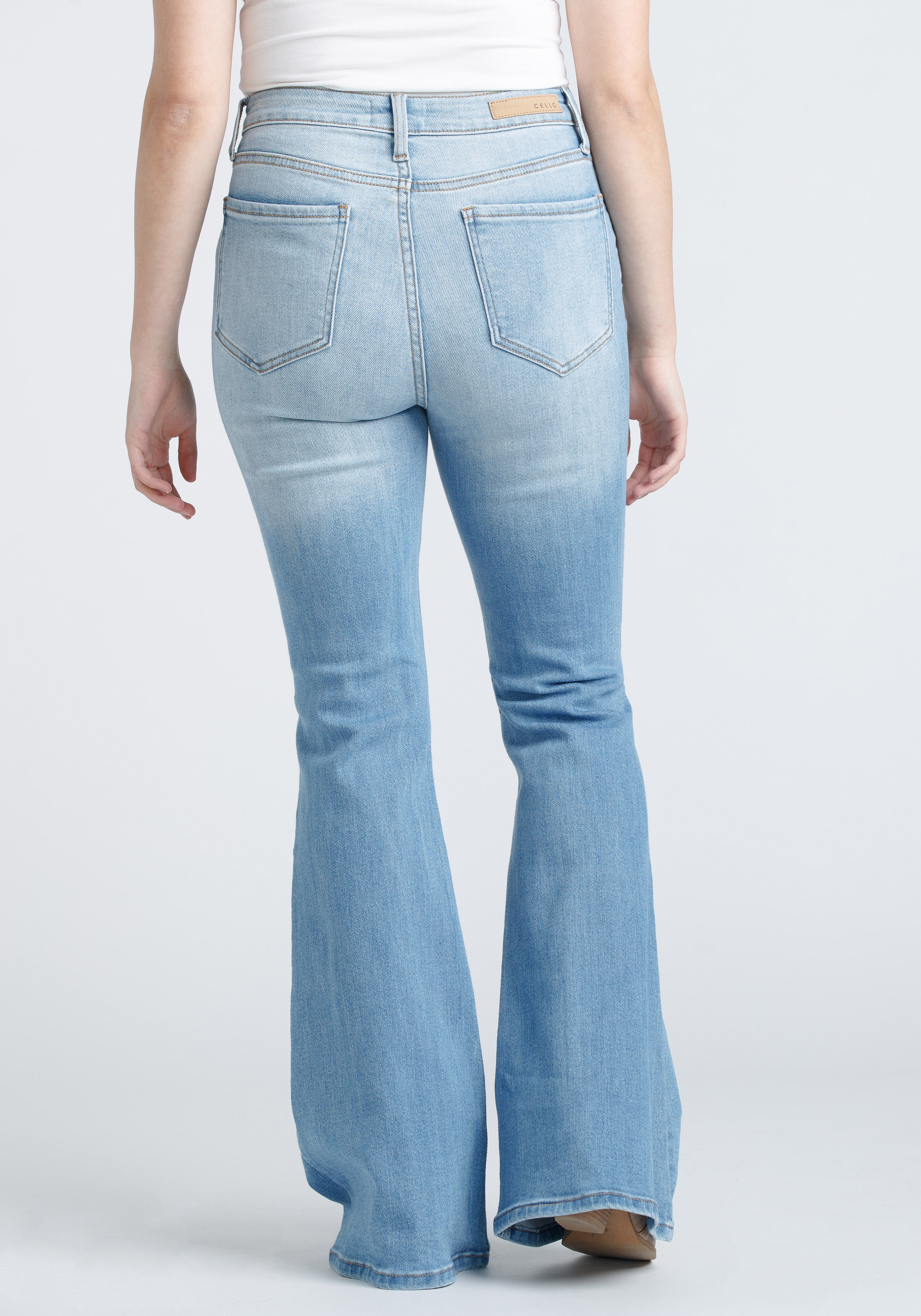 Rated 5 out of 5 by from Perfect Flare I bought these about a month a go and I loved the color right away! Great ombre light to darker blue. They have a true flare that is super flattering. I'm 5'4 and found the jeans to be quite long so I cut the hem off and let them fray and it just adds to the look with my platform shoes. Also the jeans are a true high rise and have just the right amount of stretch. I would have to say size-wise they run just slightly big but not enough to need to size down.