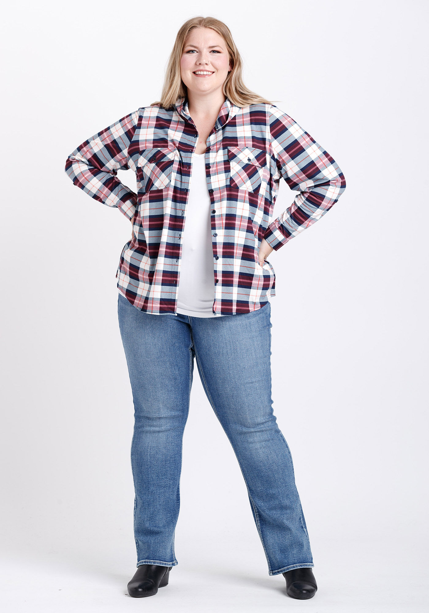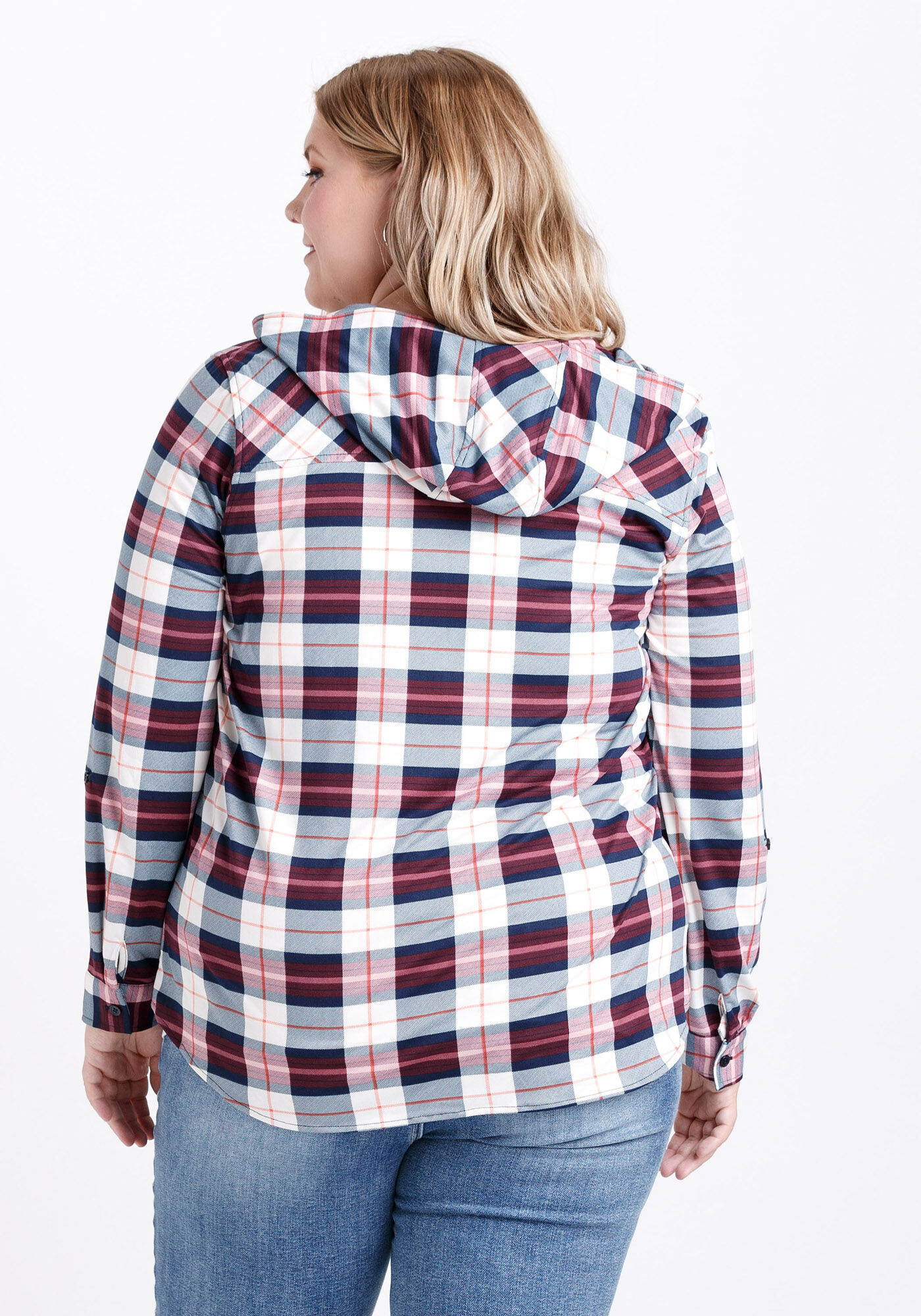 Women's Hooded Knit Plaid Shirt Image 2