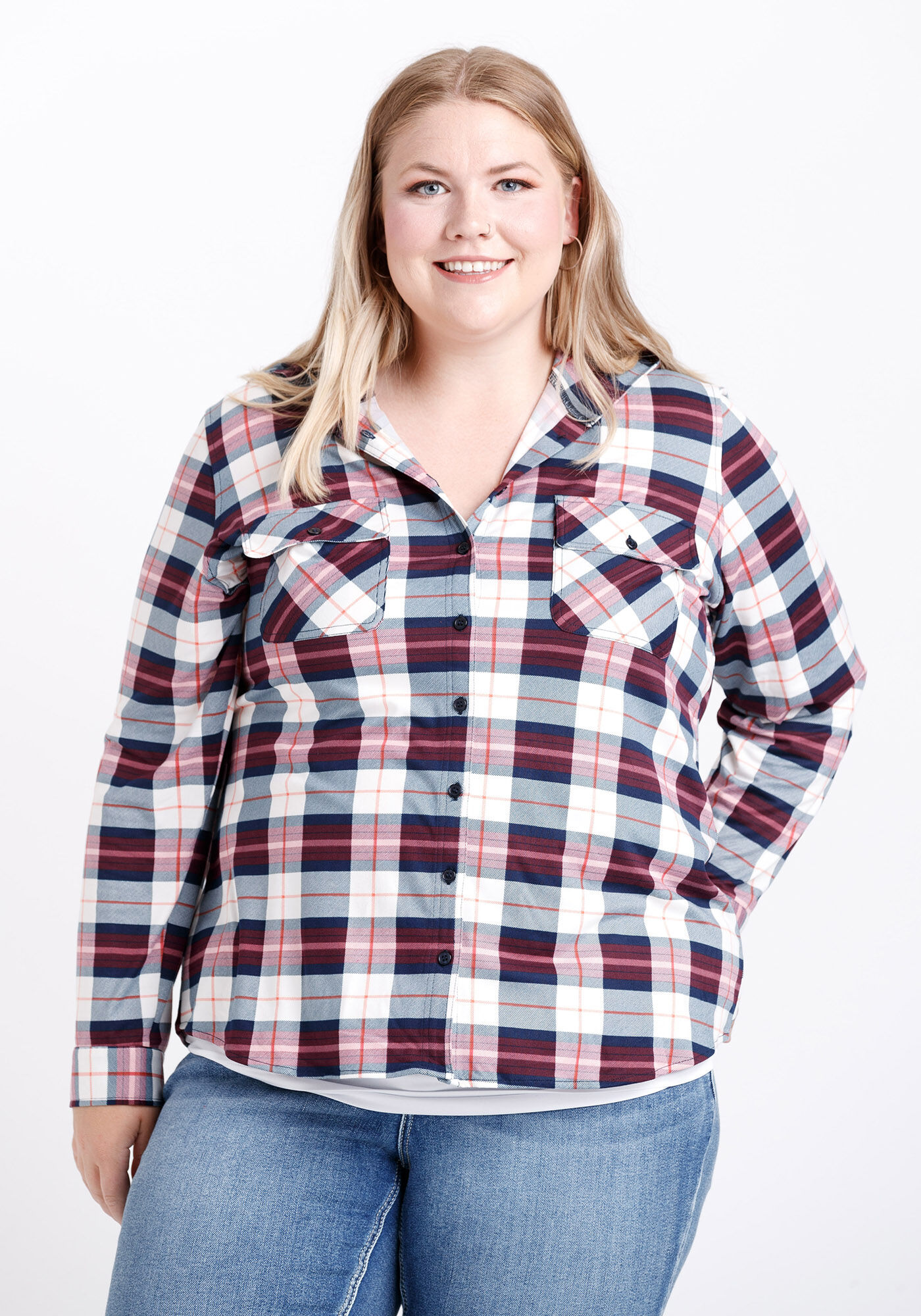 Women's Hooded Knit Plaid Shirt Image 1