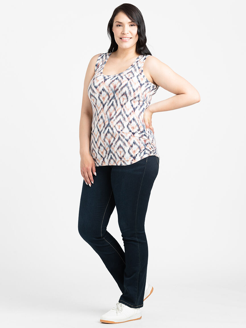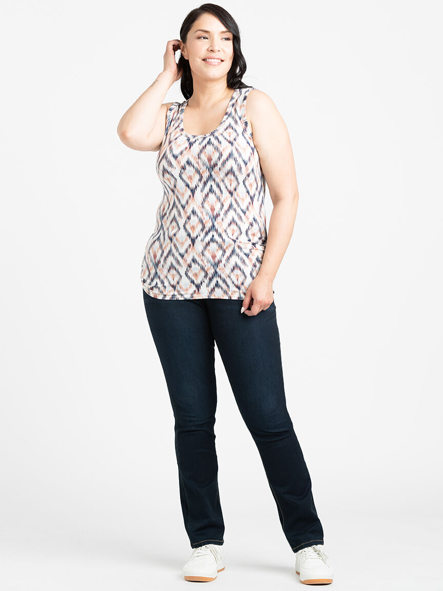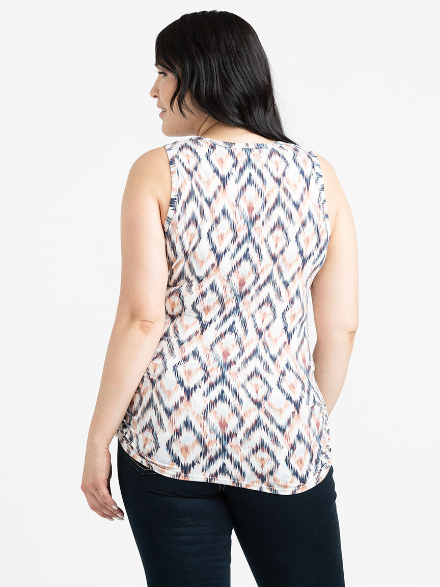 Rated 5 out of 5 by from Neat Pattern! I bought this top mainly because I like the style so much. I now have 8 of them in different patterns! I'm happy to see something other than floral for once! I love the combo of colors too.