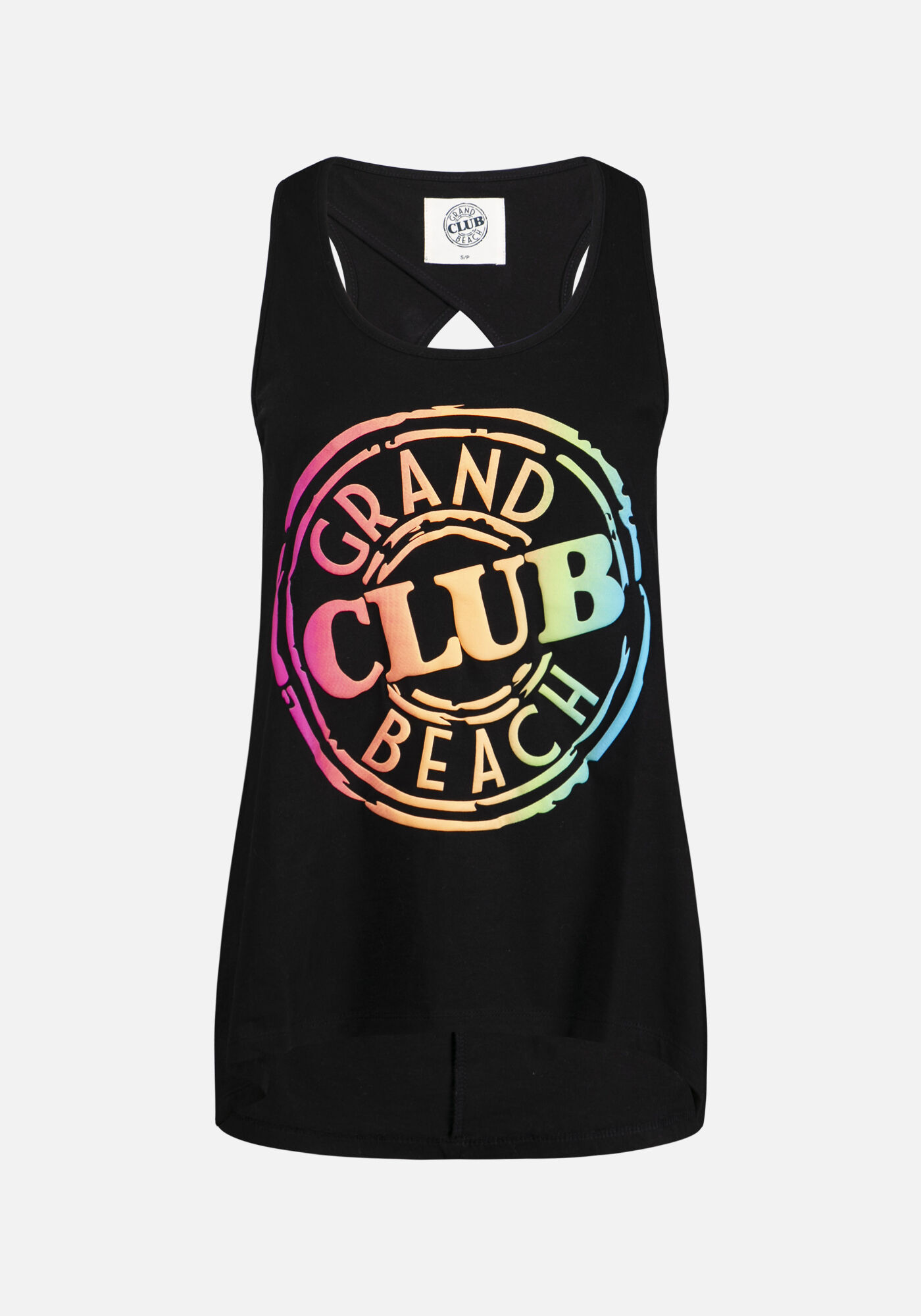 Rated 3 out of 5 by from So Cute but missed the mark This Tank had such promise, the key hole in the back is super cute and a great idea to give a feminine touch to a "muscle tank", but with the long flouncy sides it is trying to make it too fancy of a shirt and confusing the direction. Grand Beach Club is about tossing it on once you are done at the beach or the pool, not going out looking pretty. This tank needed to be one or the other. Love the logo but a little disappointed in the execution. Hopefully you will do another run with a different style.