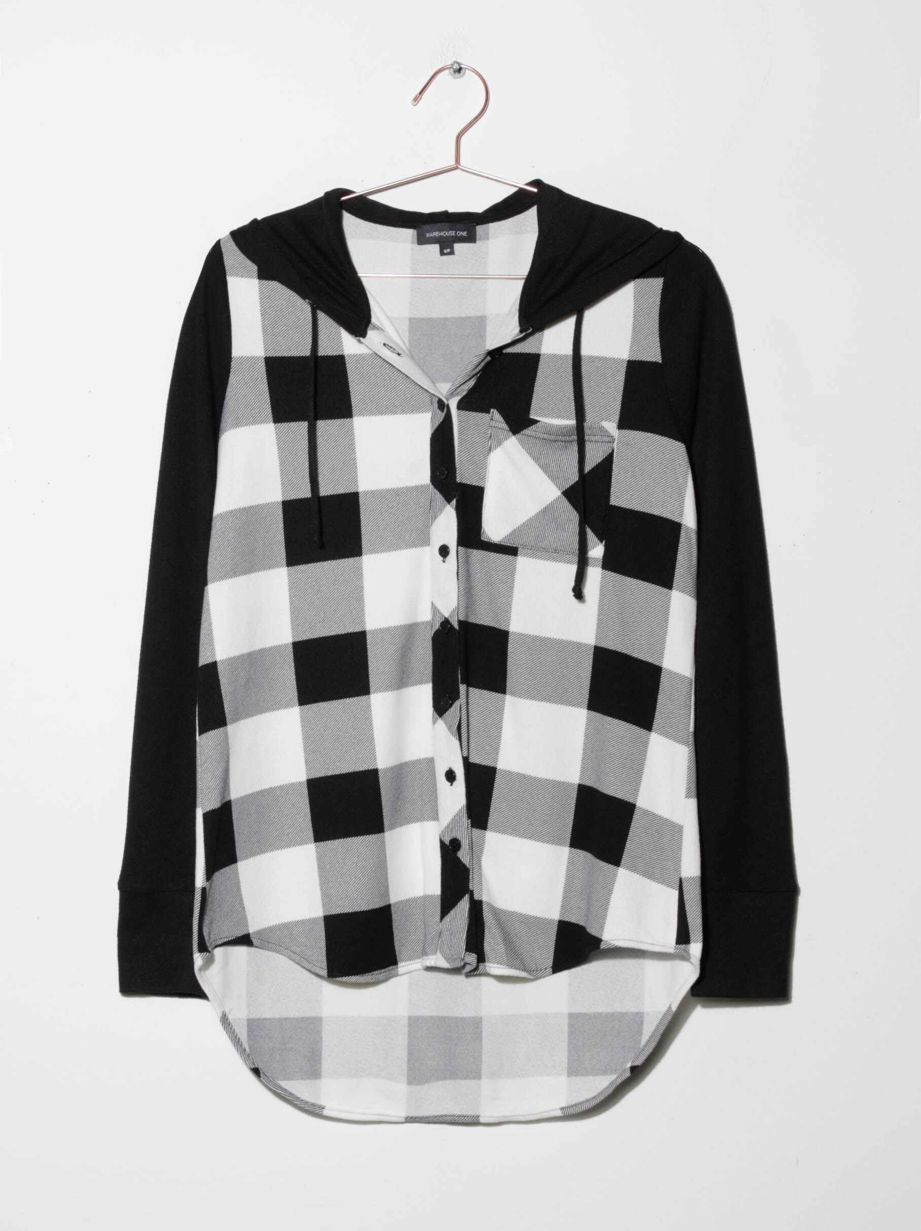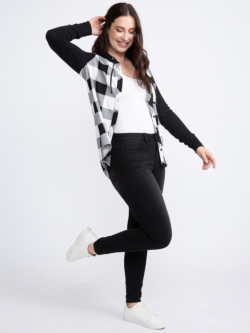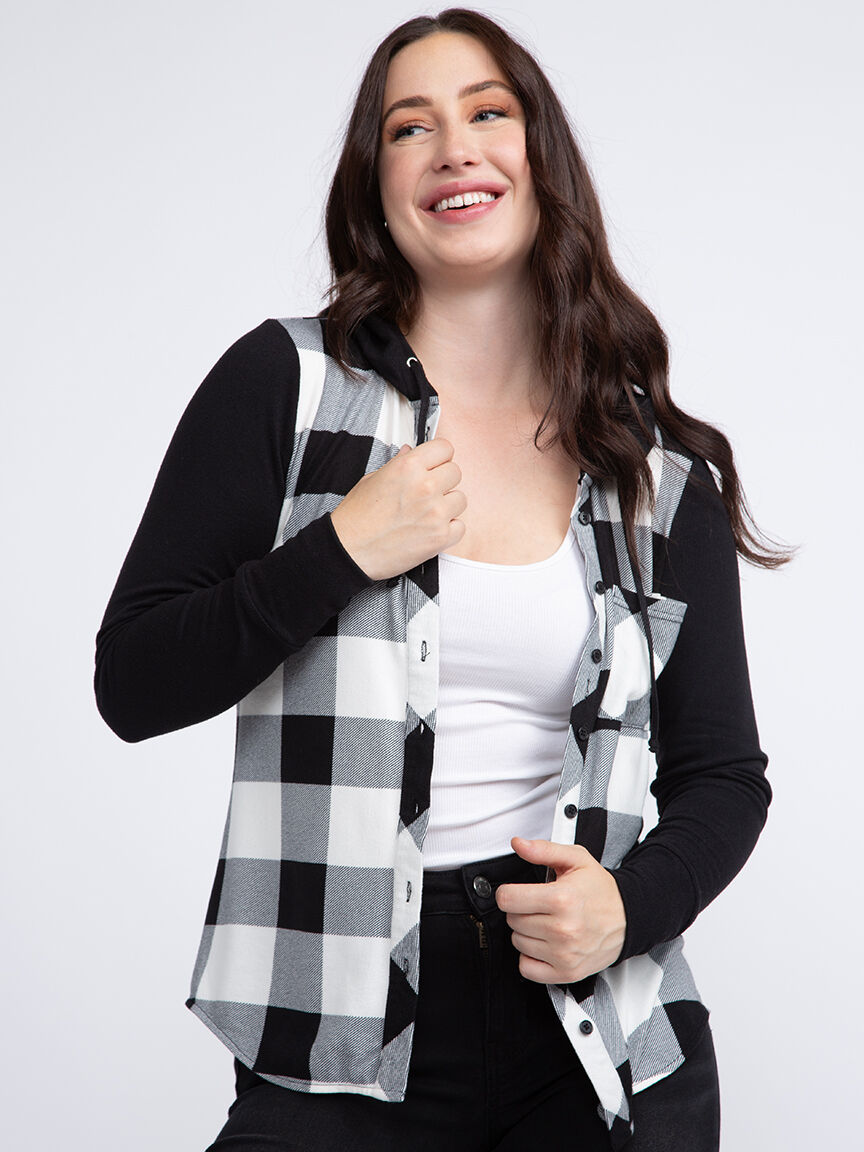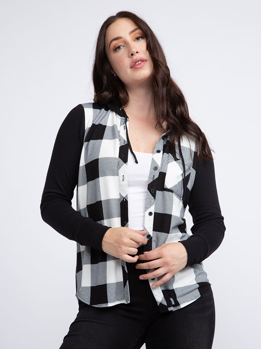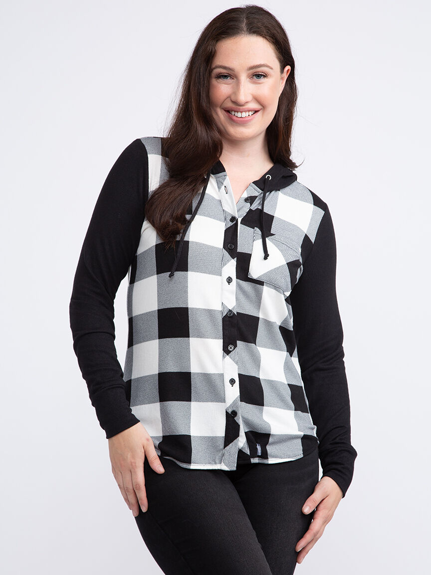 Women's Knit Hooded Buffalo Plaid Shirt Image 1