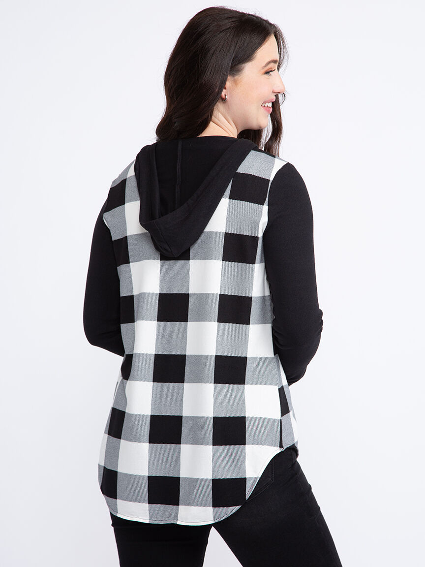 Women's Knit Hooded Buffalo Plaid Shirt Image 6