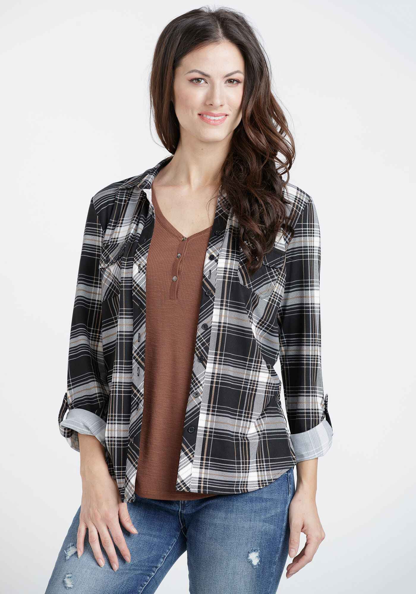 Women's Knit Plaid Shirt Image 1