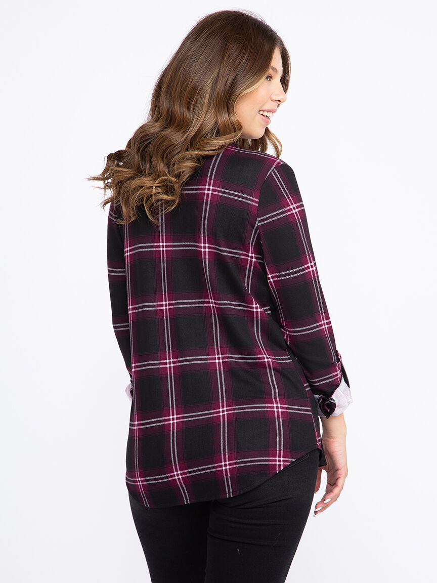 Women's Knit Plaid Shirt Image 3