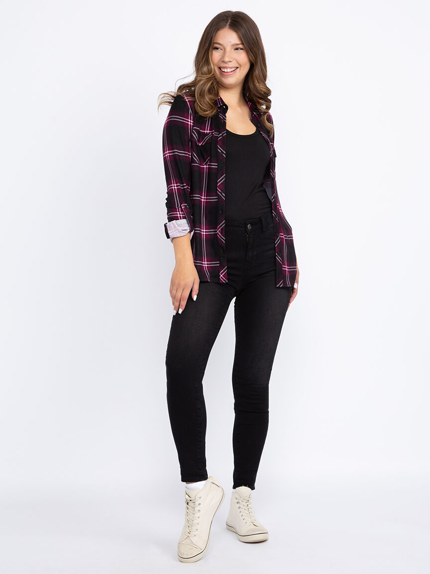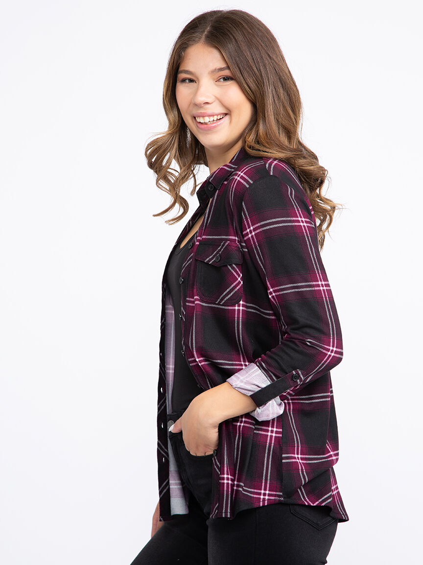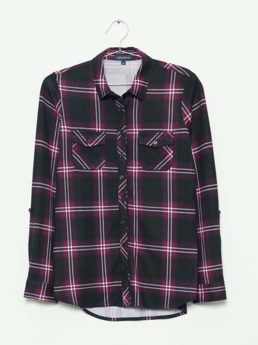 Rated 5 out of 5 by from Women's plaid shirt I bought two of these shirts, one in red and lack and the other in green and blue. They are so soft and comfortable and easy to wash. They do not shrink as they are made from polyester and spandex. Sizes are true.