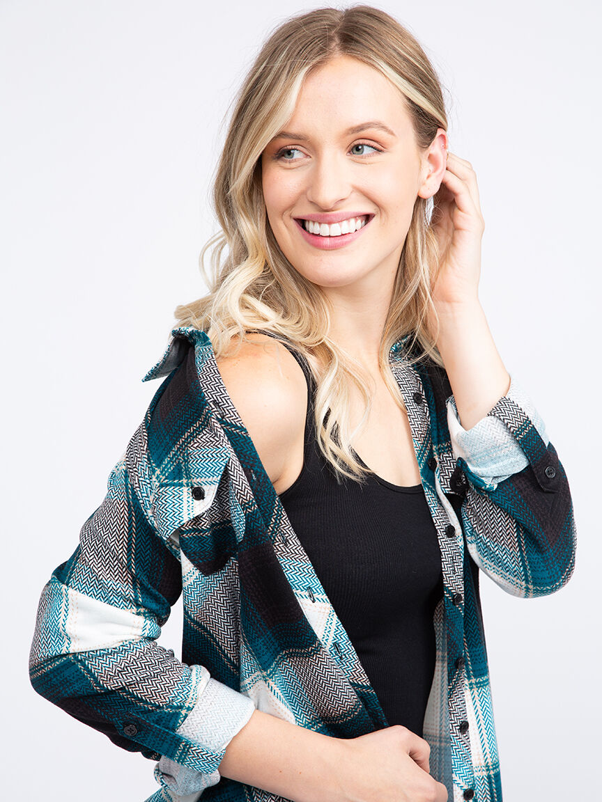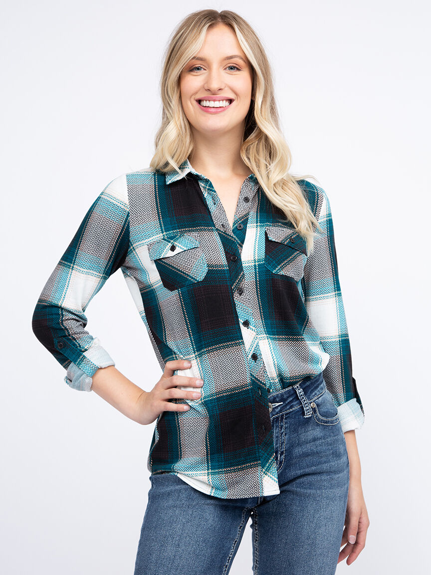 Women's Knit Plaid Shirt Image 1