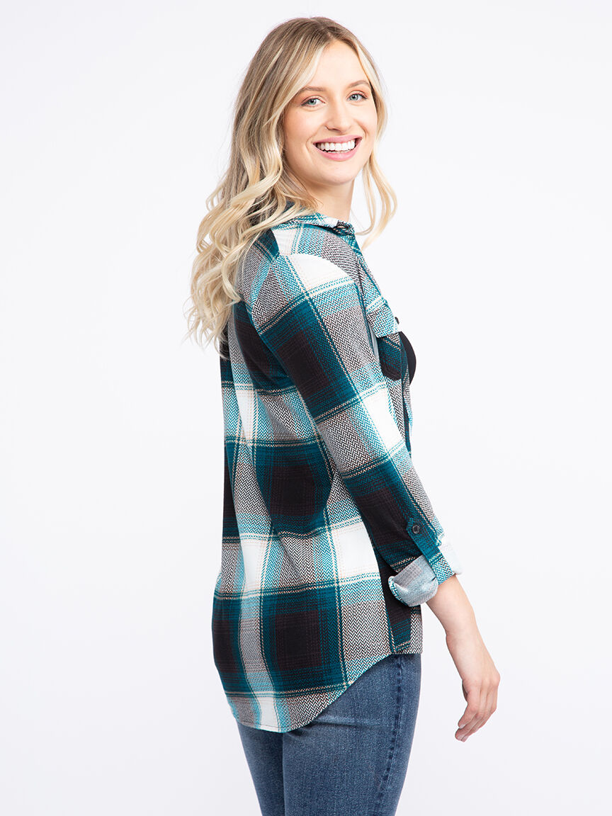 Women's Knit Plaid Shirt Image 3