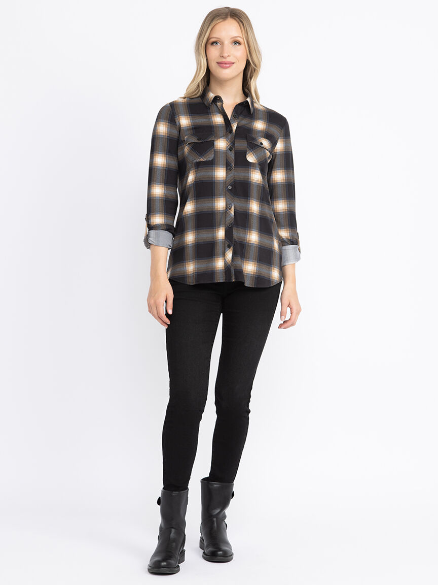 Women's Knit Plaid Shirt Image 3