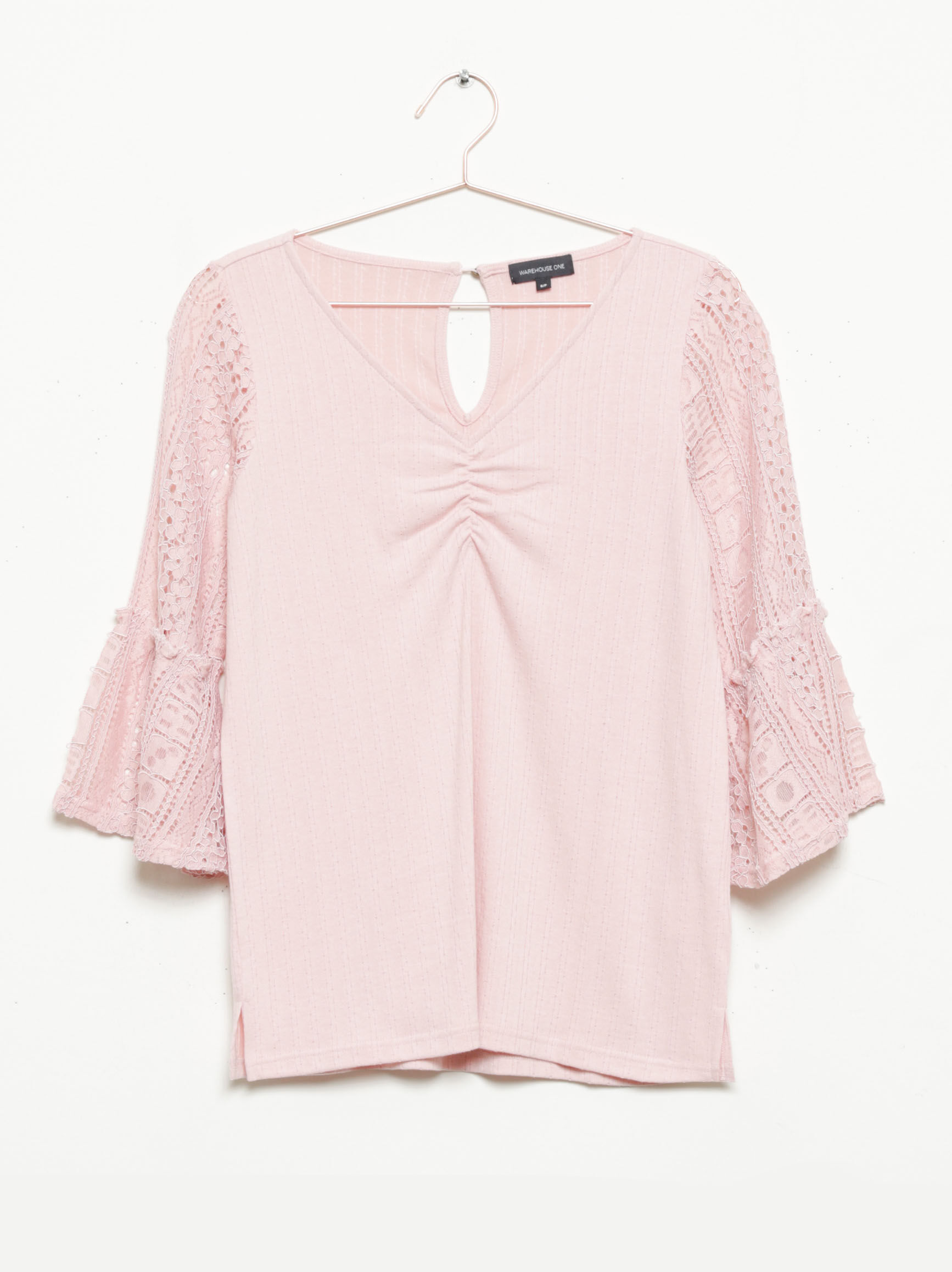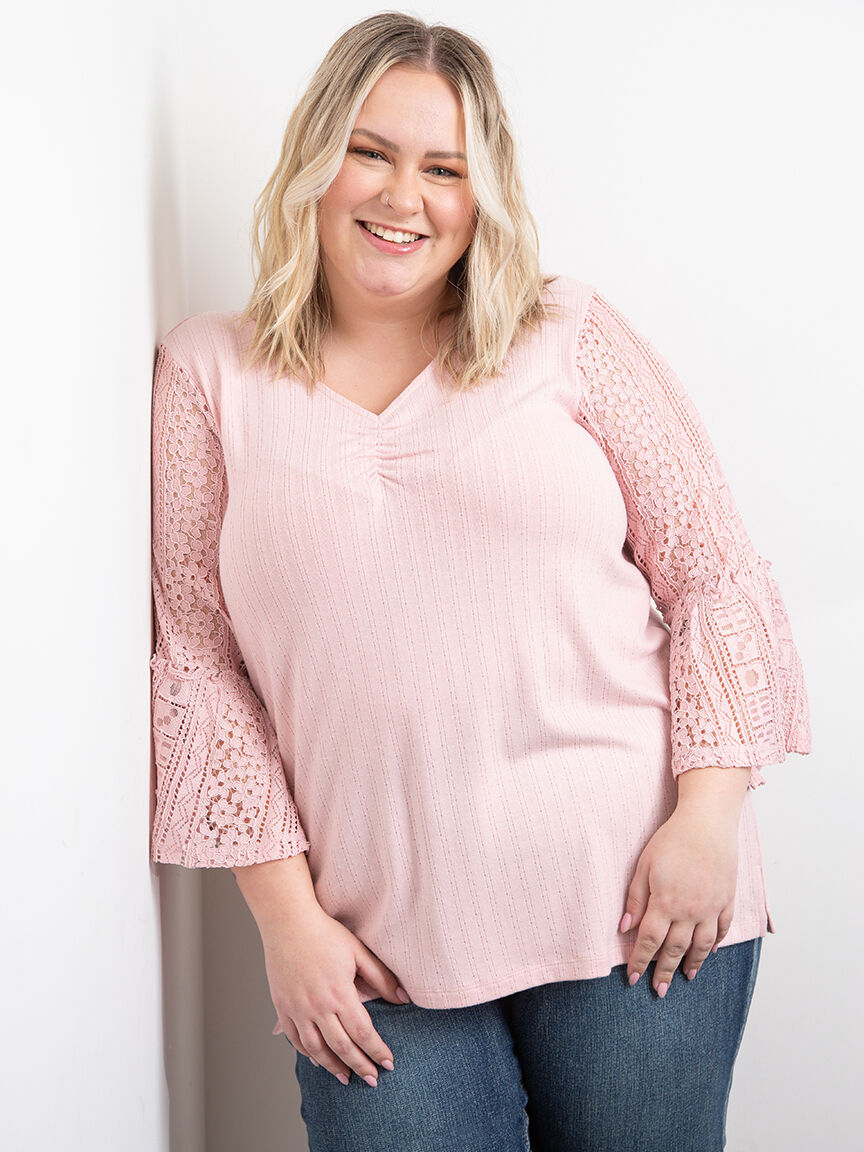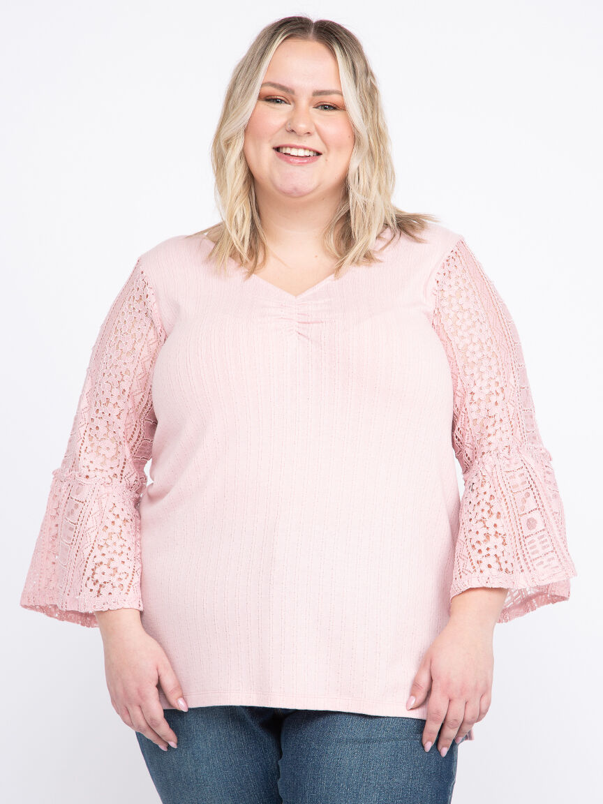 Rated 5 out of 5 by from Bell Sleeve Lace Top I bought this a month ago and when I have worn it I have gotten compliments on it! It is comfy but also, very pretty with the lace sleeves! Would like to see more tops with lace detail!