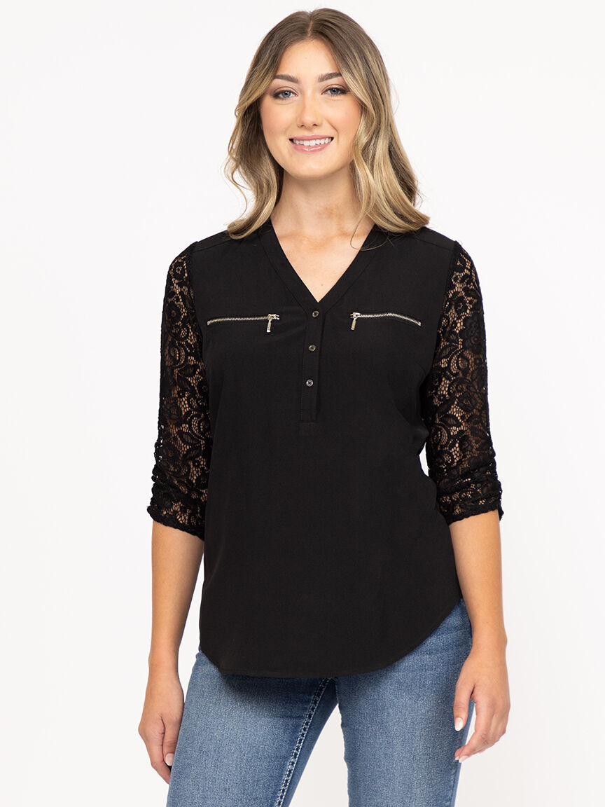Rated 5 out of 5 by from Woman’s black lace sleeve blouse Beautiful and comfortable at a great sale price! Love the newest blouse sale items you have!