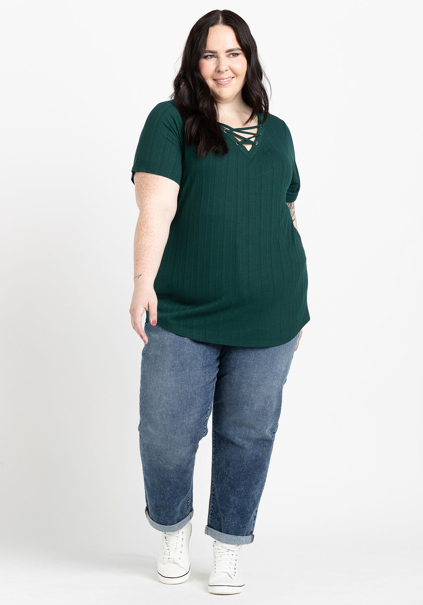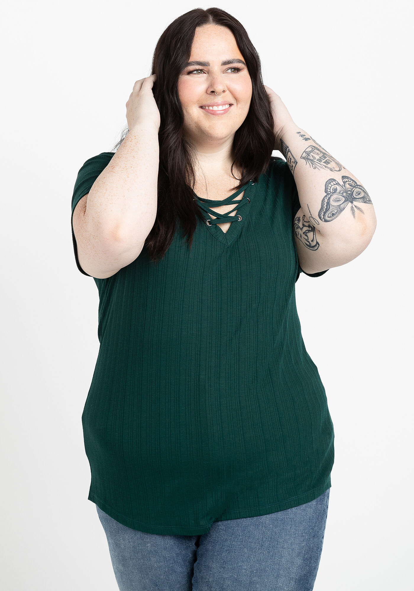 Women's Lace Up Ribbed Tee Image 3