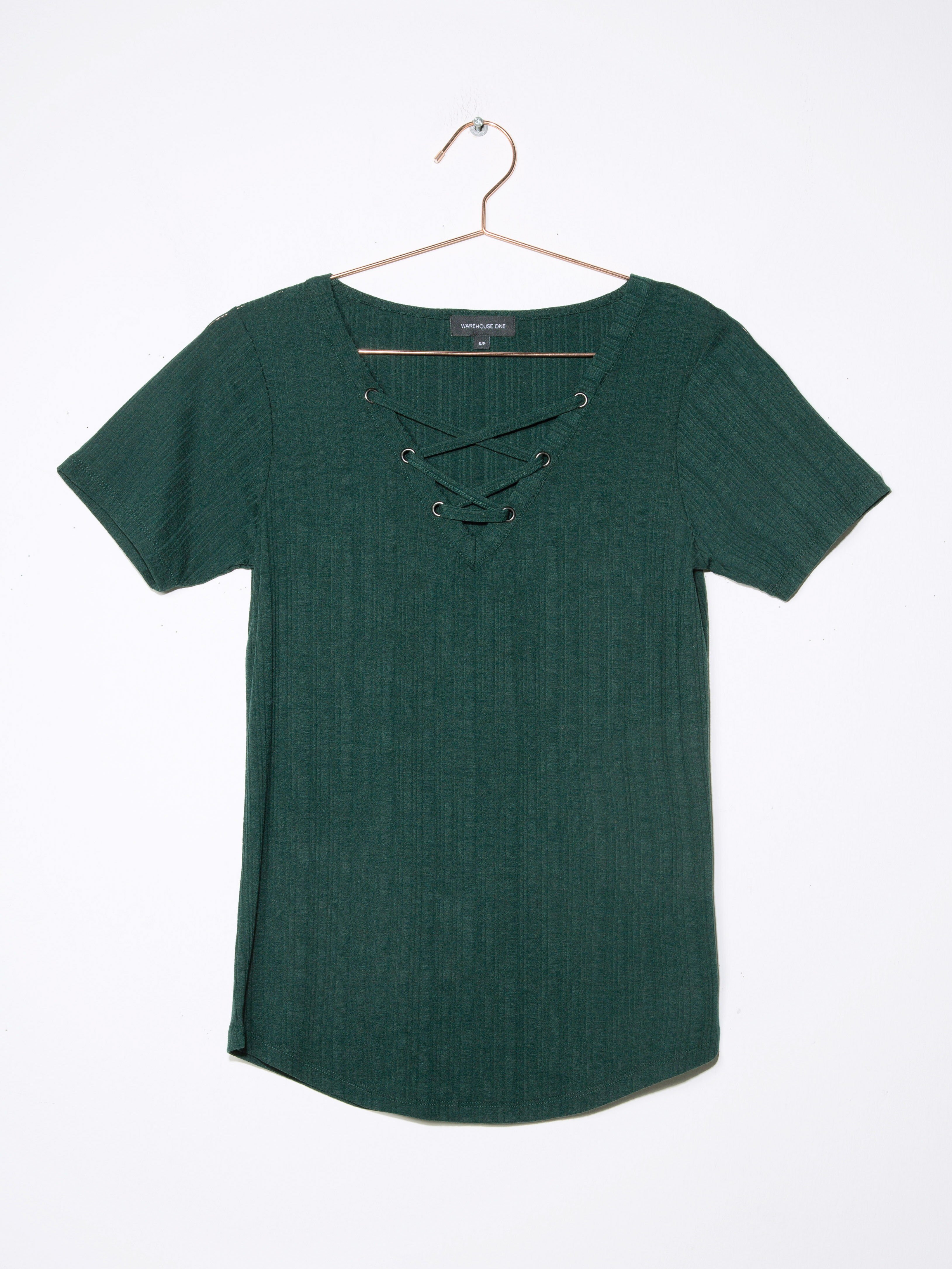 Women's Lace Up Ribbed Tee Image 1