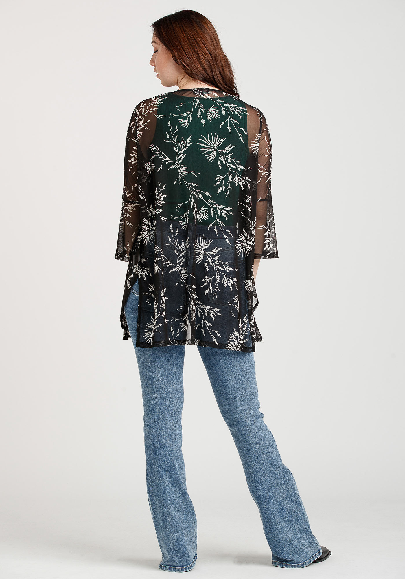 Rated 5 out of 5 by from Beautiful topper for summer I was looking for a lightweight piece to wear over plain-coloured sleeveless tops. I am very pleased with this. It's light, comfortable and flattering with a nice stretch to it. I like it so much I bought a second one.