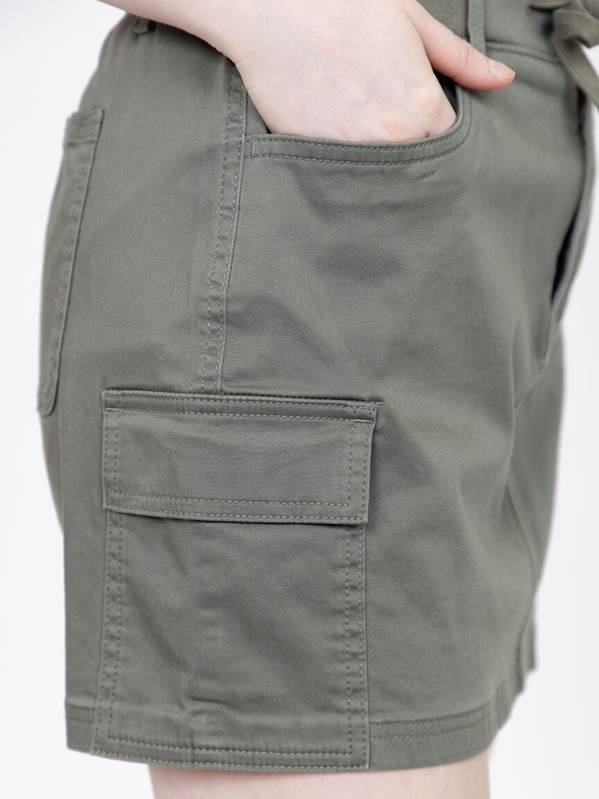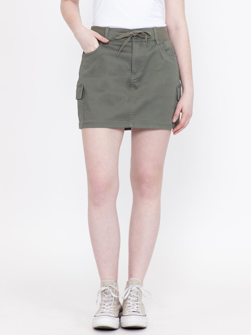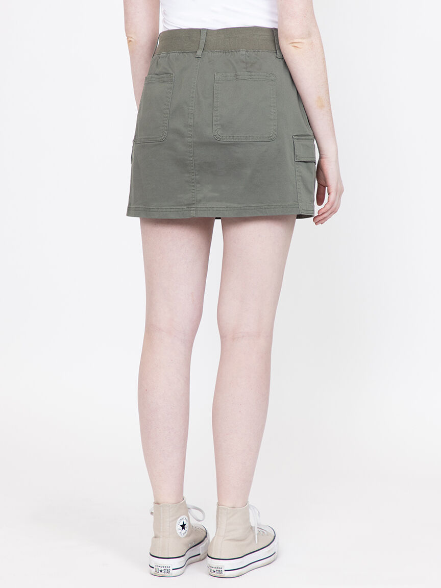 Women's Light Olive Knit Waist Cargo Mini Skort