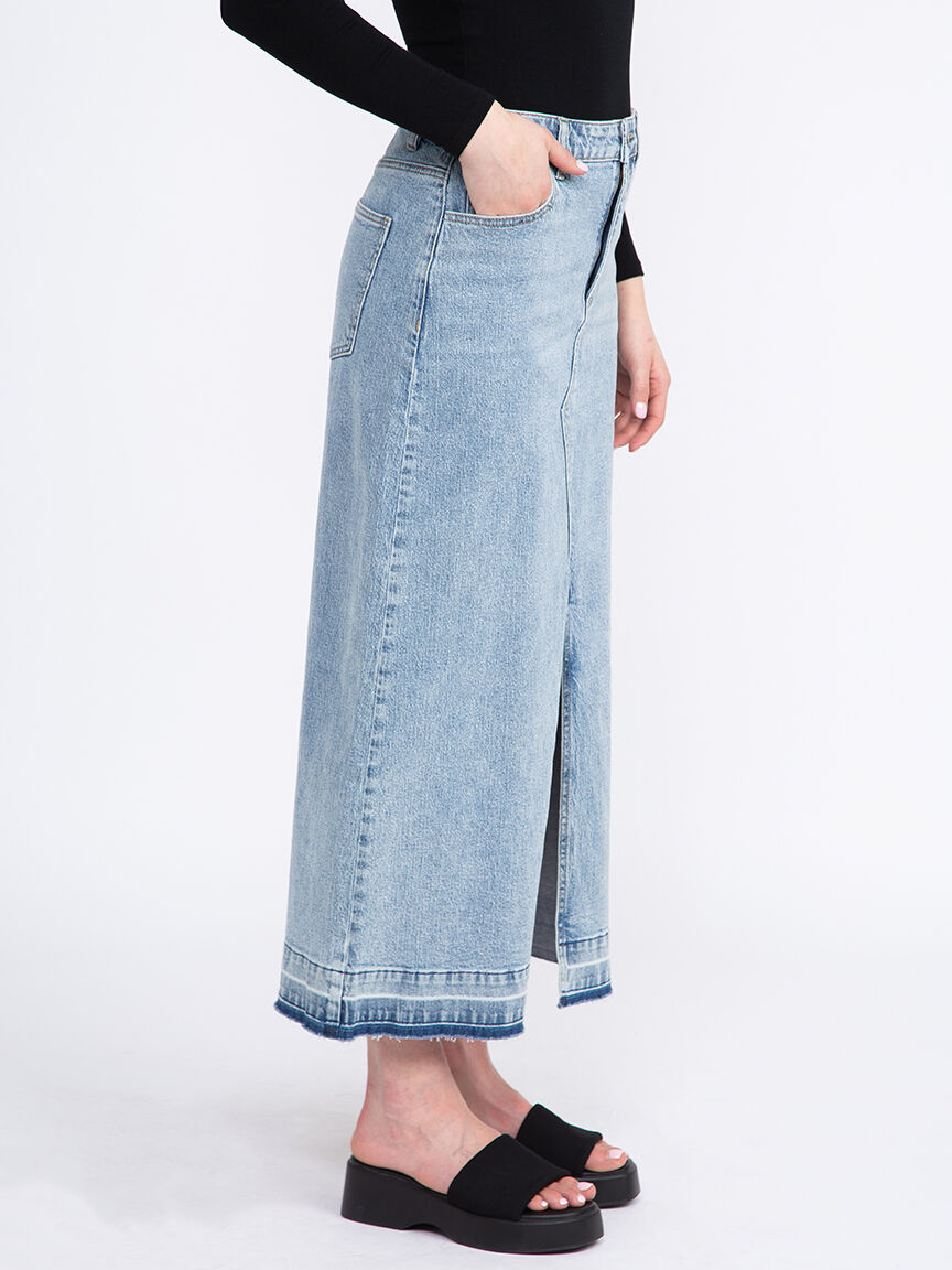 Women's Maxi Denim Skirt with Raw Hem is rated