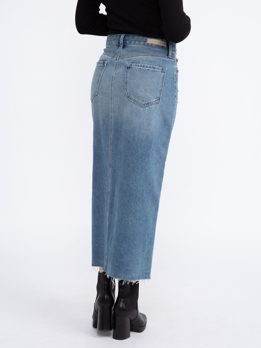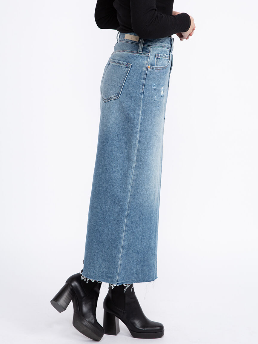 Women's Mid Waisted Maxi Skirt with Front Slit