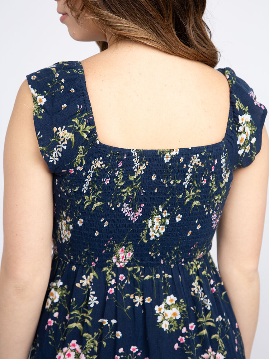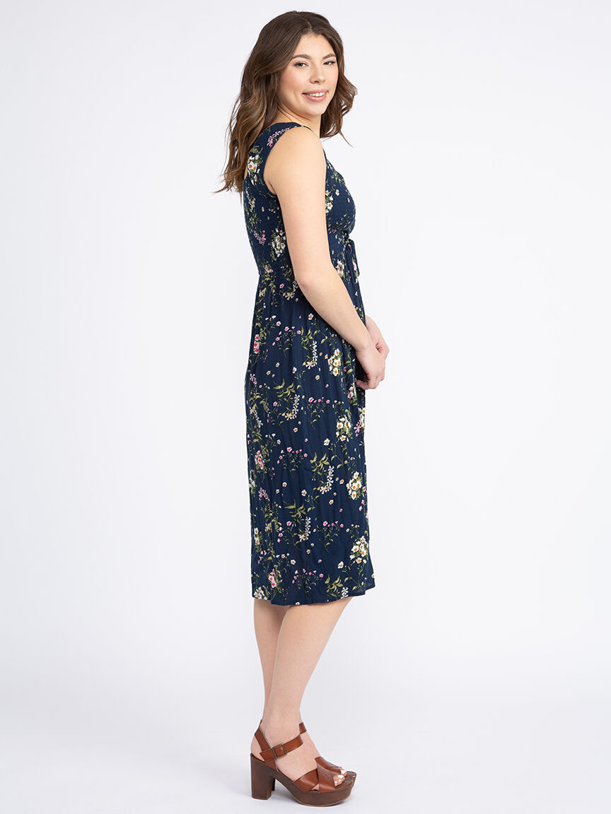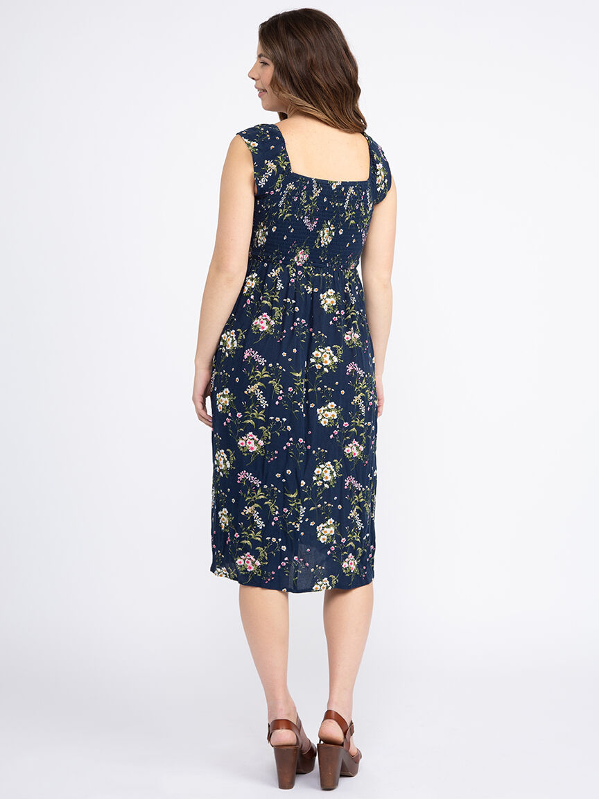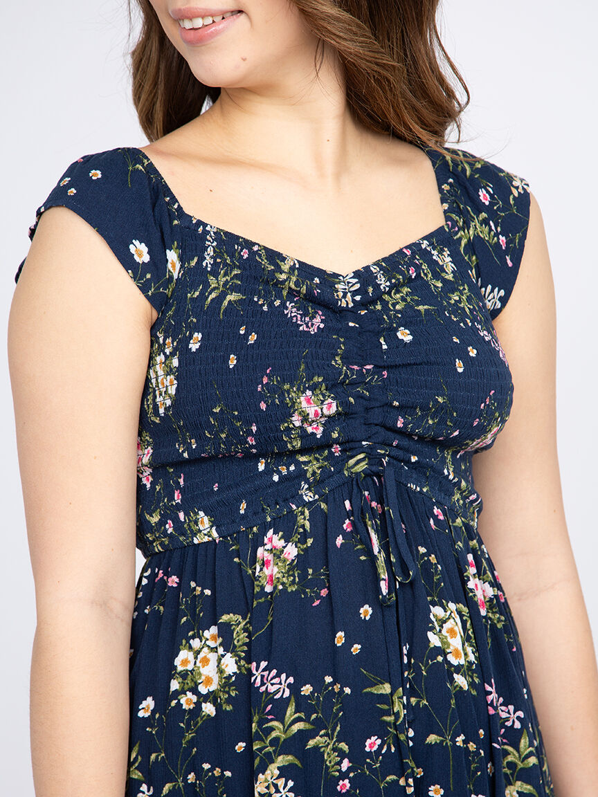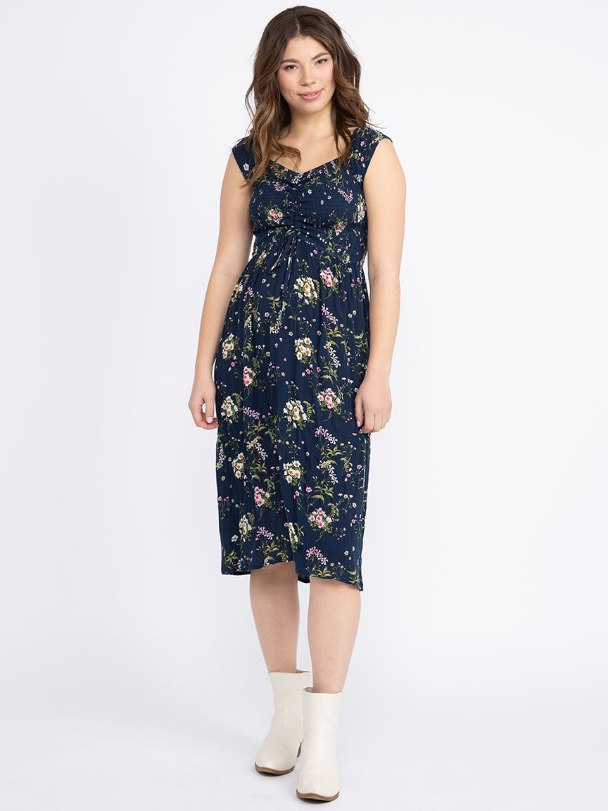 Rated 5 out of 5 by from Super Flattering It was the delicate floral pattern and the neckline that drew me to this piece when I saw it on the hanger, but the ruching detail under the bust is what makes it such a flattering fit. I'm thicker through the middle and a little self-conscious about that area, but this dress disguised that and made me feel like a million bucks.