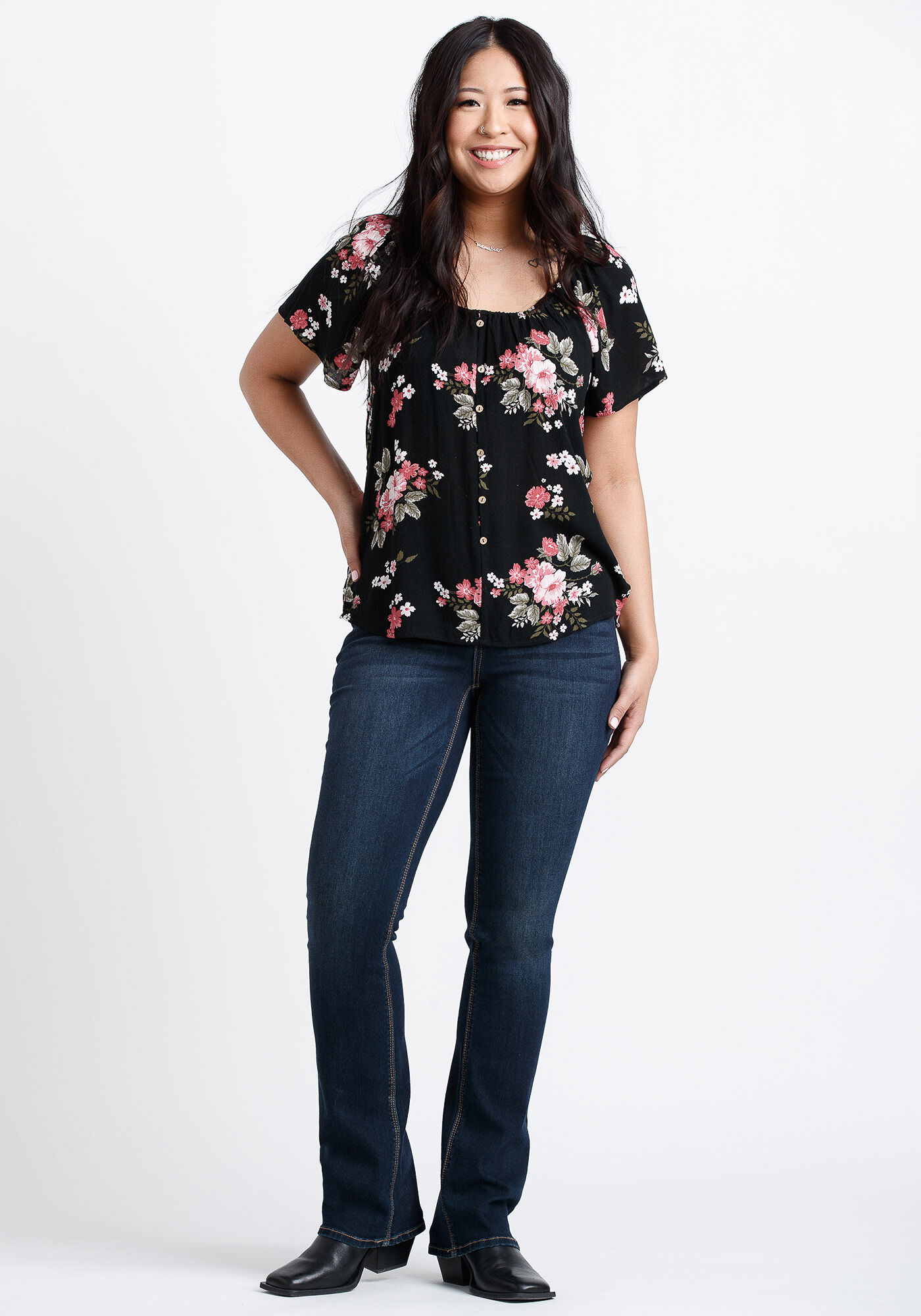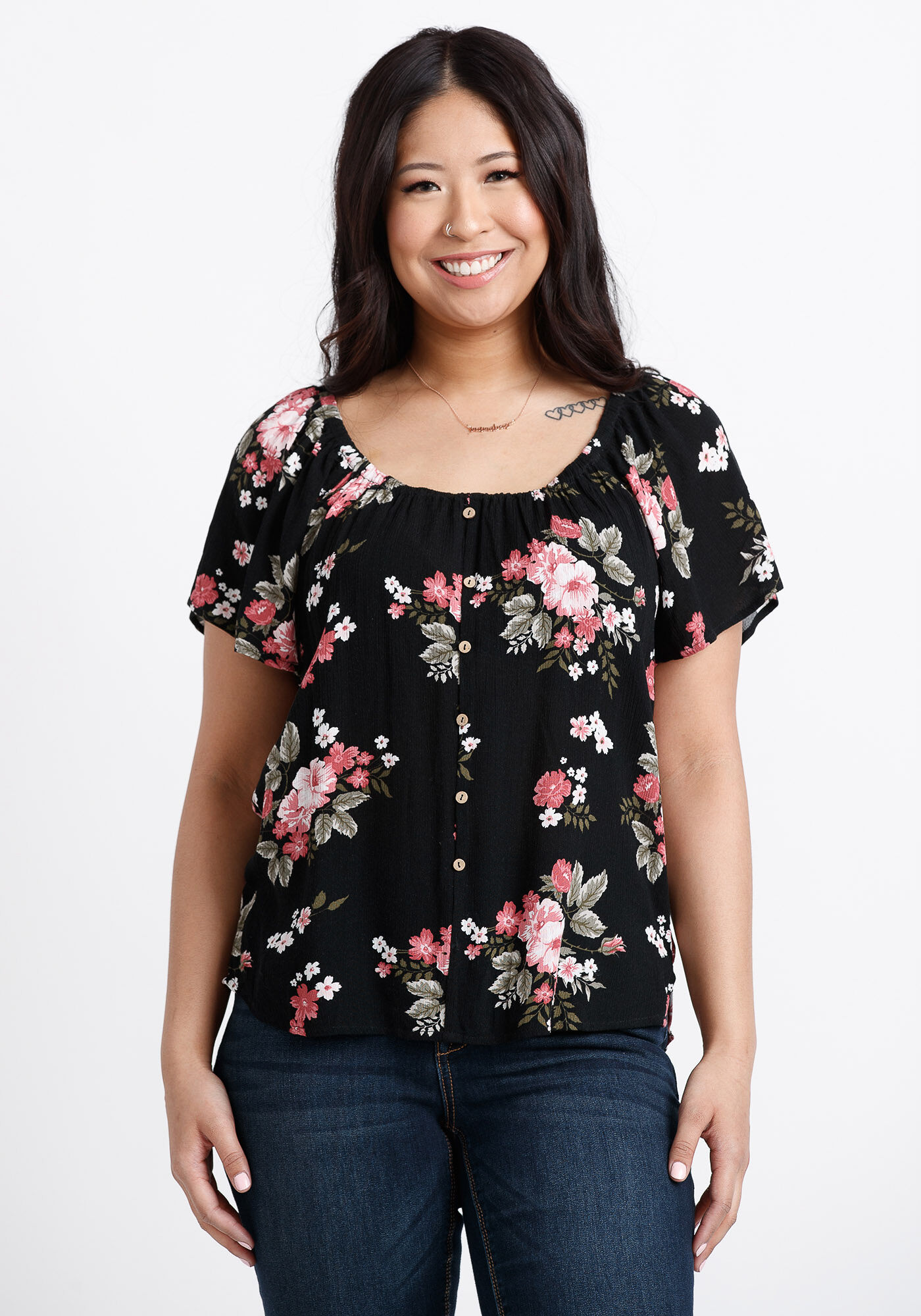 Rated 5 out of 5 by from Beautiful top and fit! I absolutely love this top! The material is very comfortable, especially for warmer days. It is very flattering and such a pretty design too!