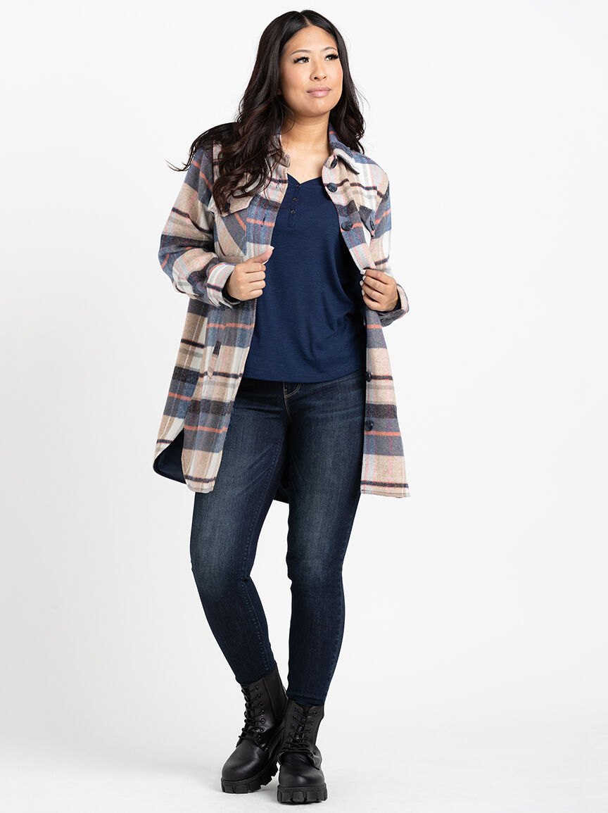 Women's Plaid Button Front Shacket Image 1