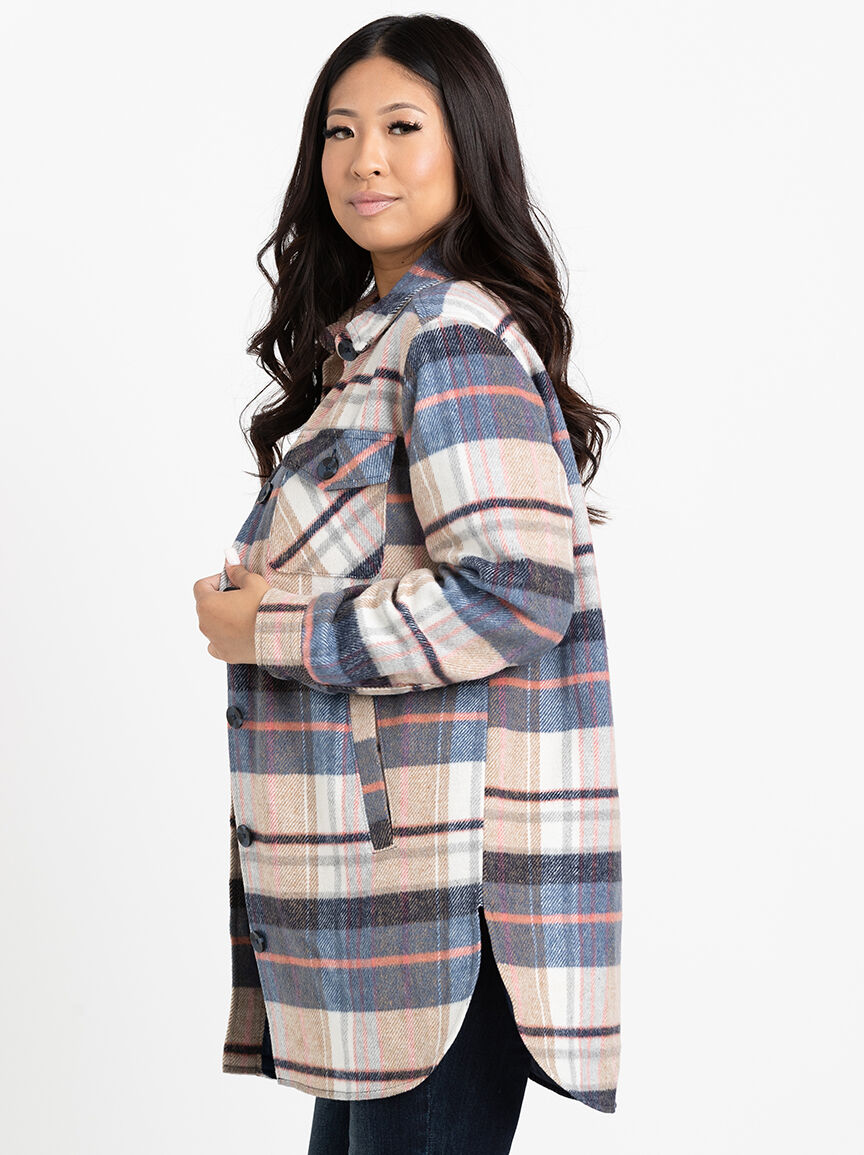 Women's Plaid Button Front Shacket Image 3