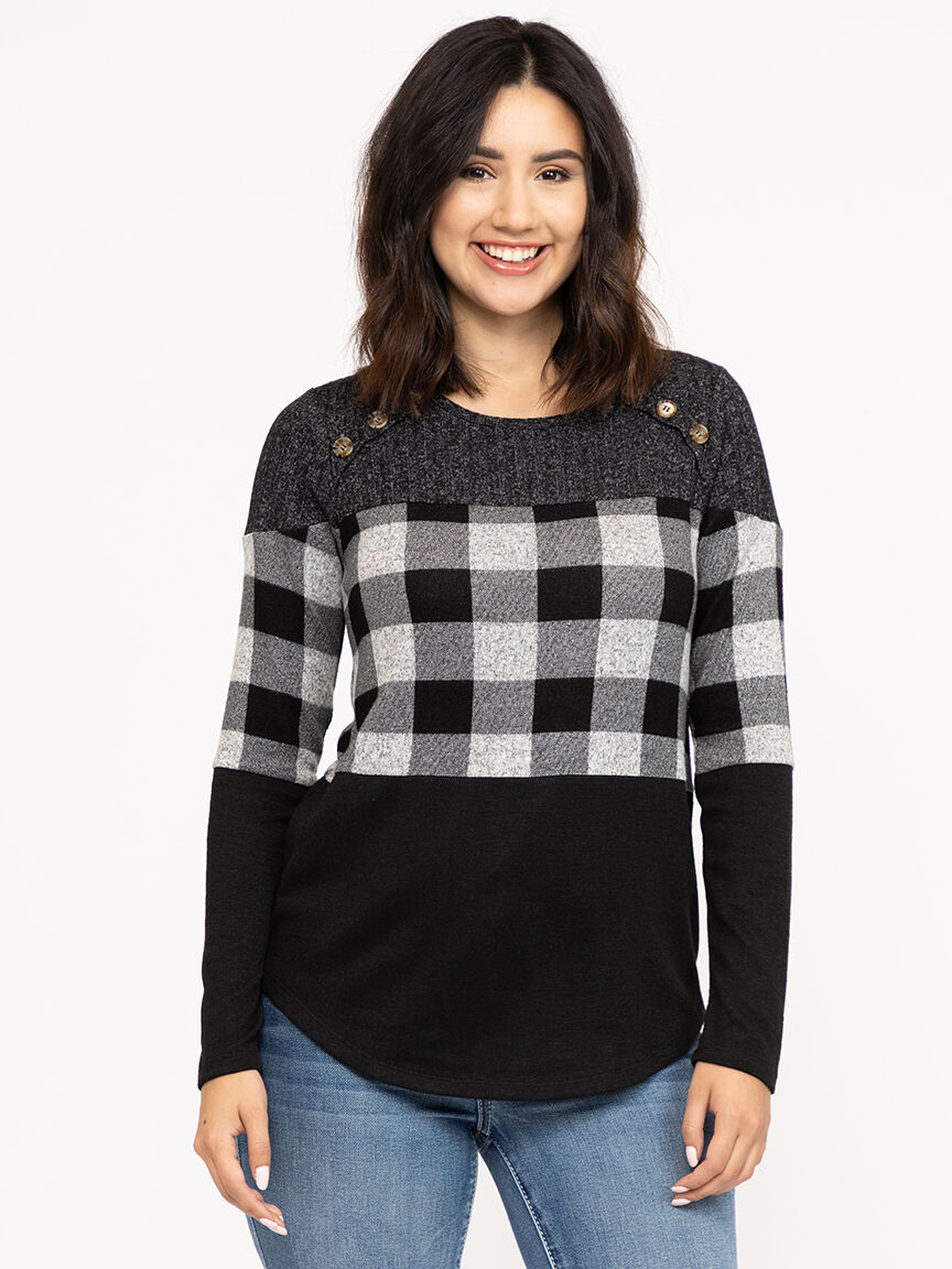 Women's Plaid Colour Block Top Image 1