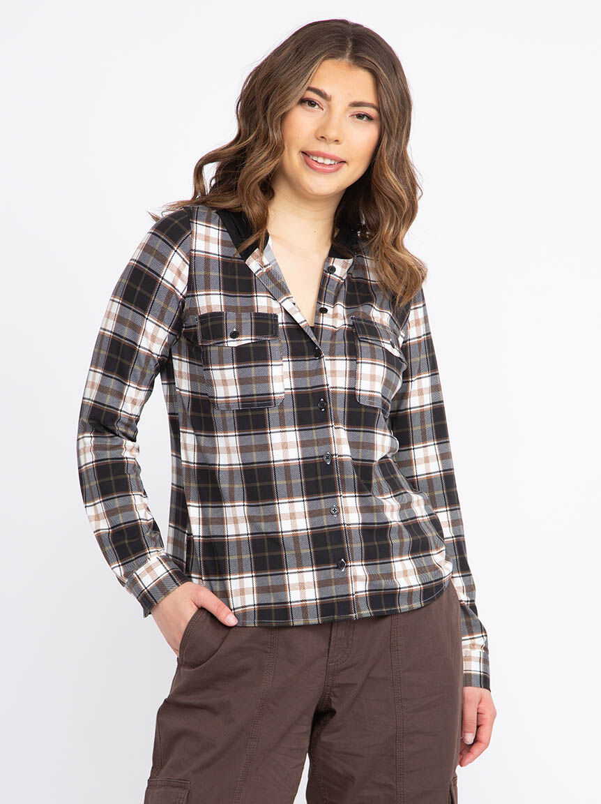 Women's Plaid Knit Hoodie Image 1