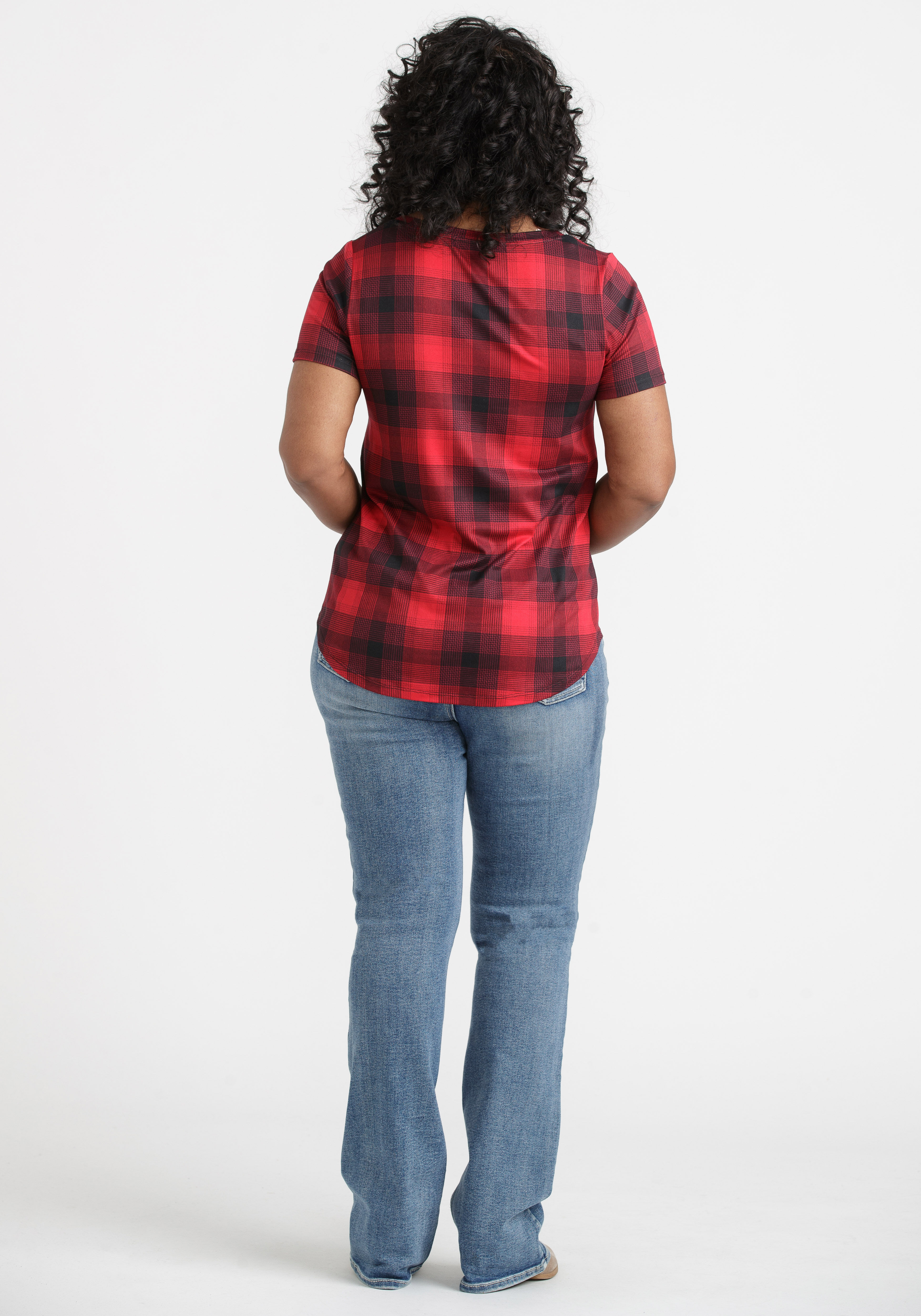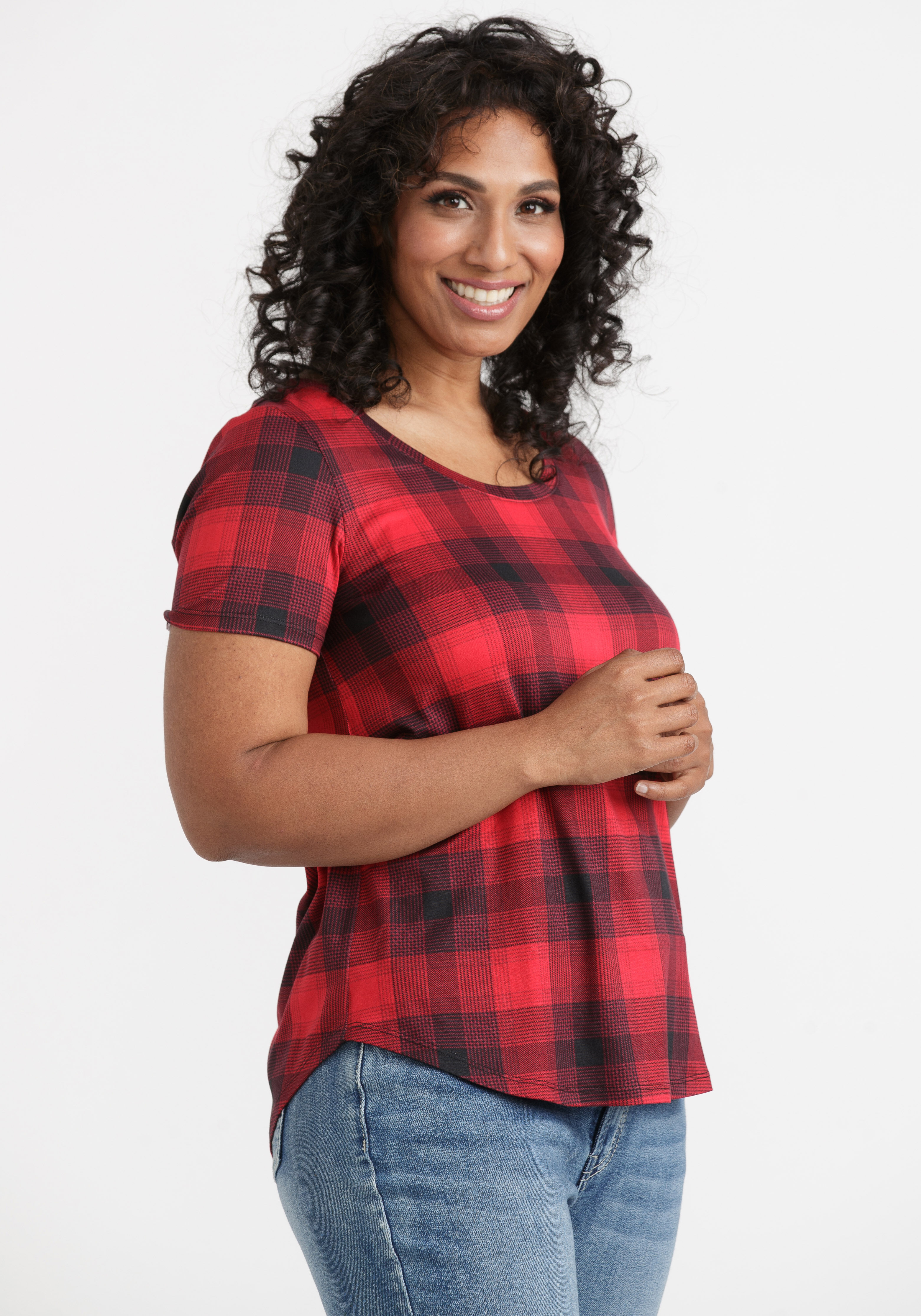 Rated 5 out of 5 by from Pretty and fits well I am happy I bought this, the plaid is nice and not something I usually buy, but I love it. the material is soft and feels so nice.