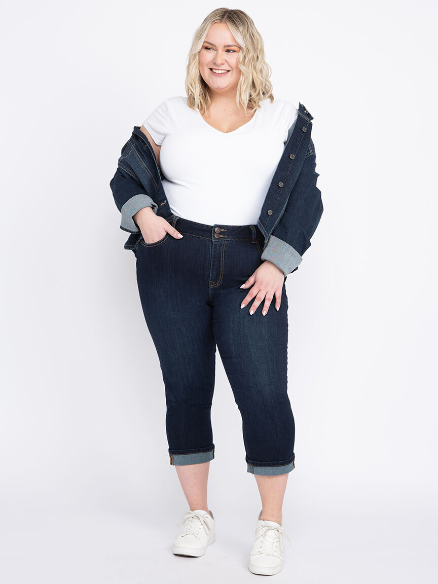 Women's Plus 2 Button Cuffed Jean Capri is rated