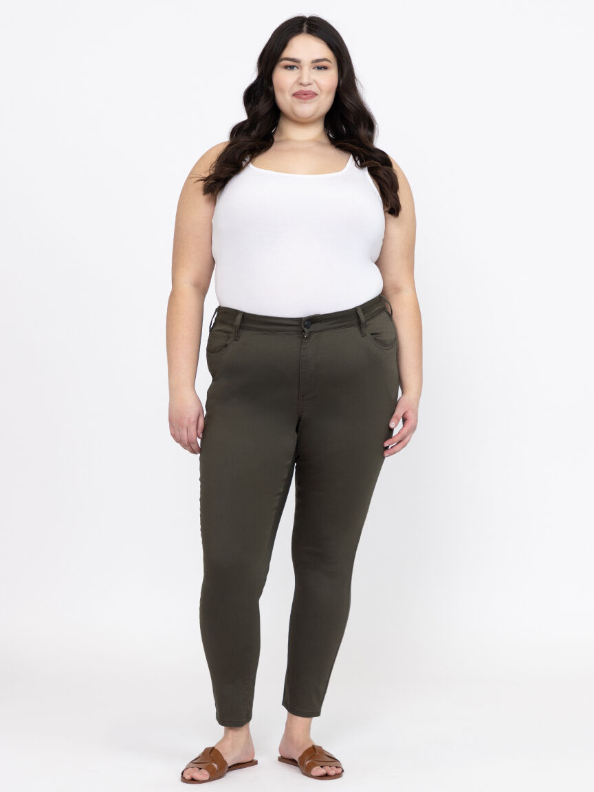 Women's Plus Dark Olive Color Skinny Pants Image 1