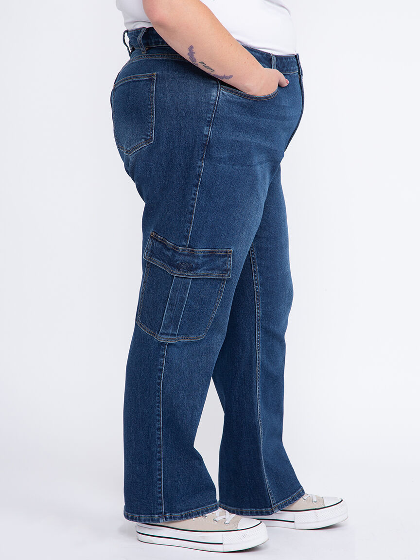 Women's Plus Dark Wash High Rise Drapey Wide Leg Cargo Jeans is rated