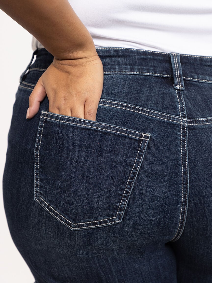 Women's Plus Dark Wash Mid Rise Double Cuffed Midi Short Image 4
