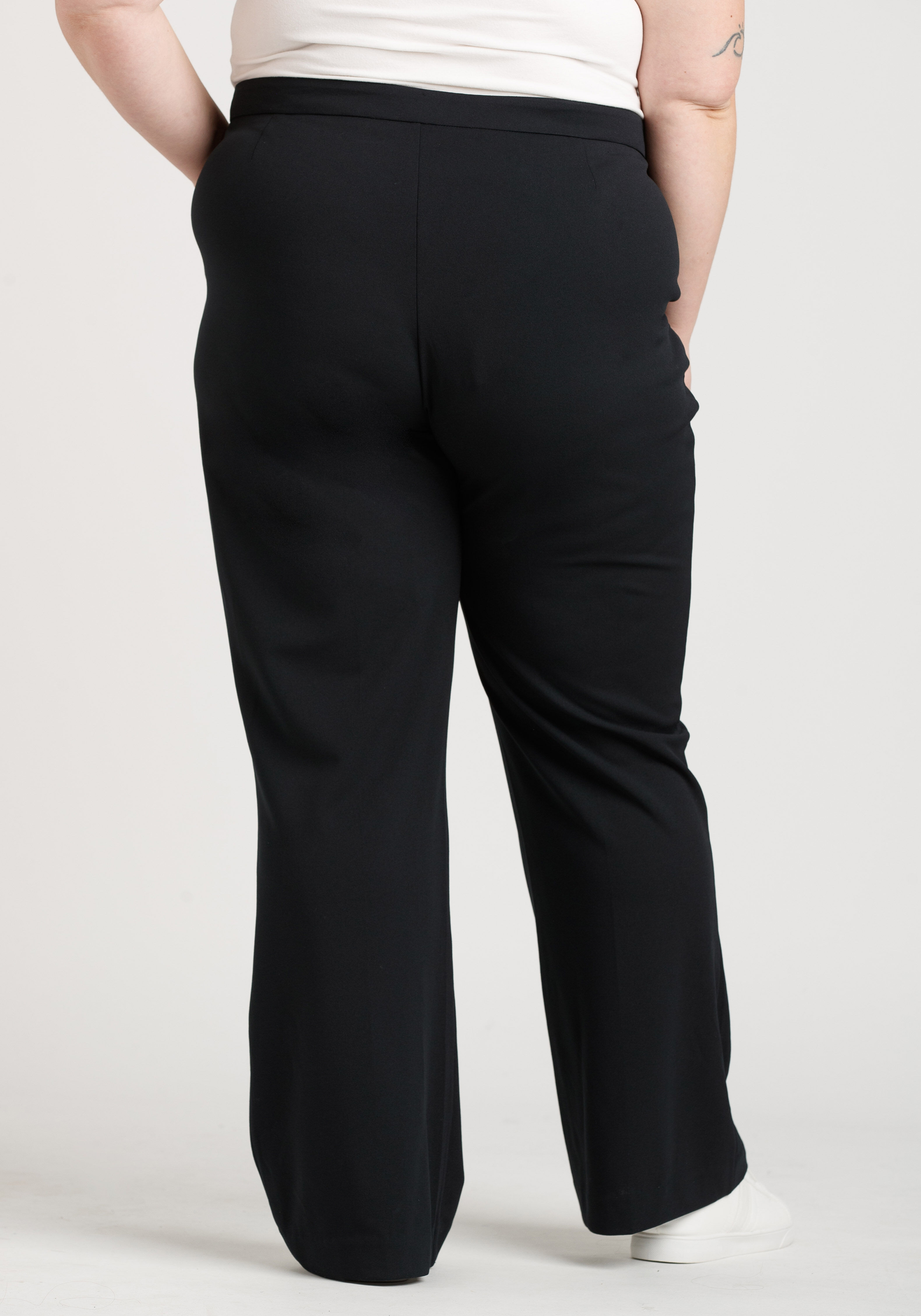Women's Plus High Rise Black Crepe Knit Wide Leg Pant