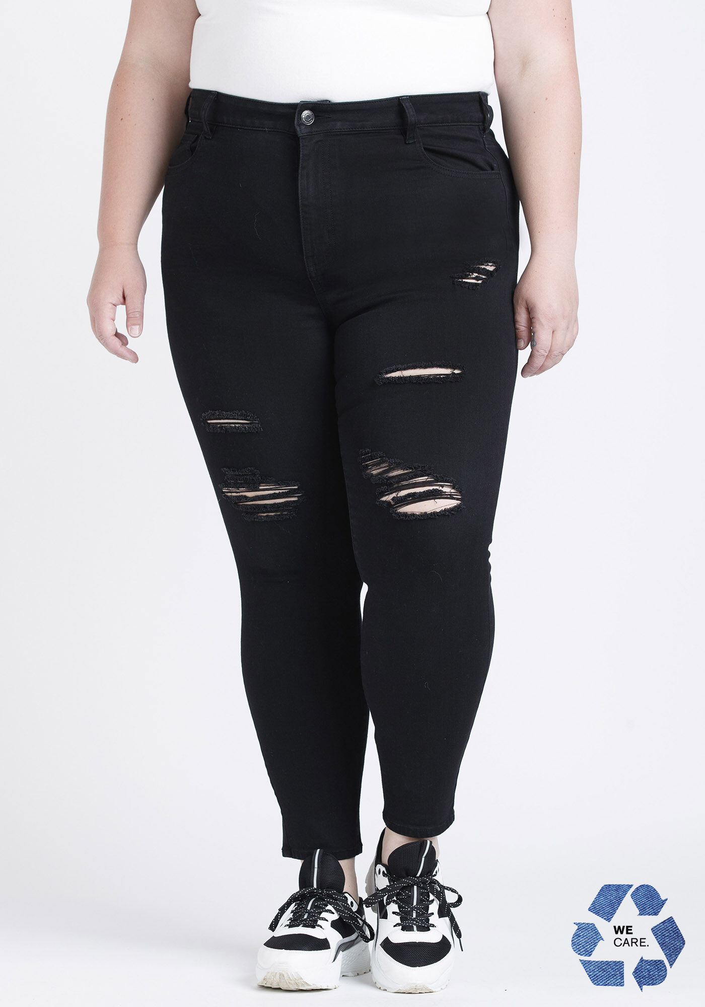 Women's Plus High Rise Black Destroyed Ankle Skinny Jeans Image 1