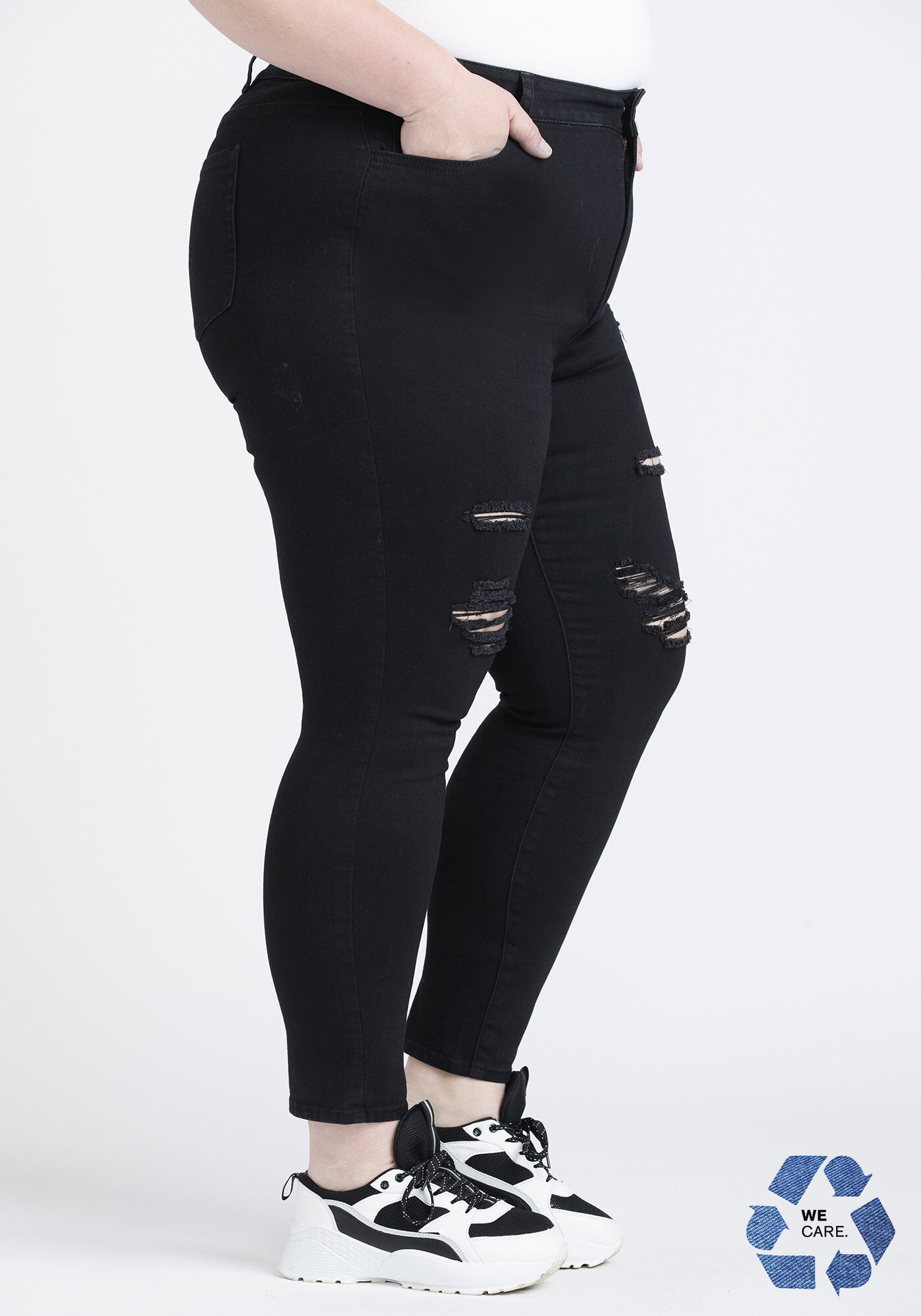 Women's Plus High Rise Black Destroyed Ankle Skinny Jeans Image 3